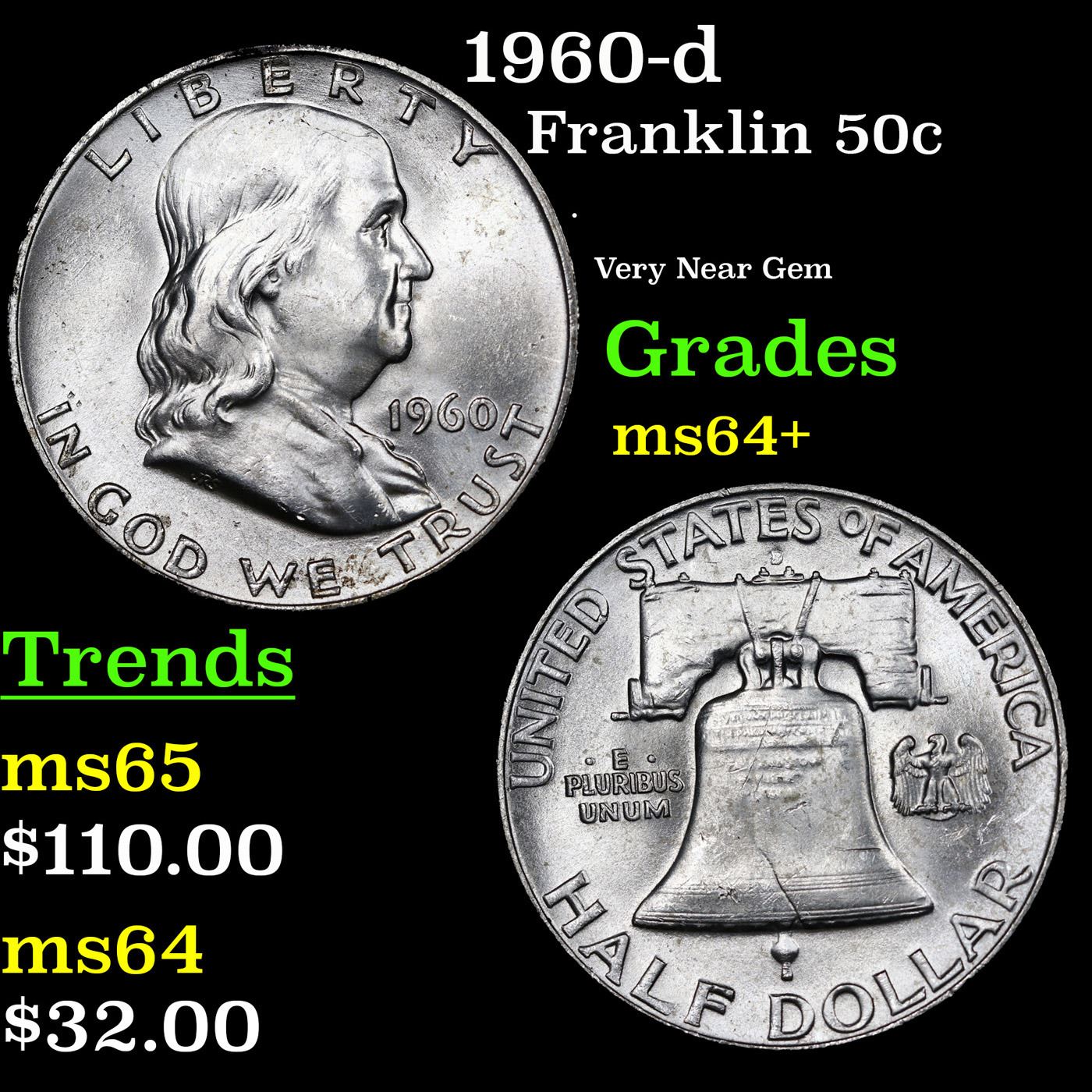 1960-d Franklin Half Dollar 50c Grades Choice+ Unc.