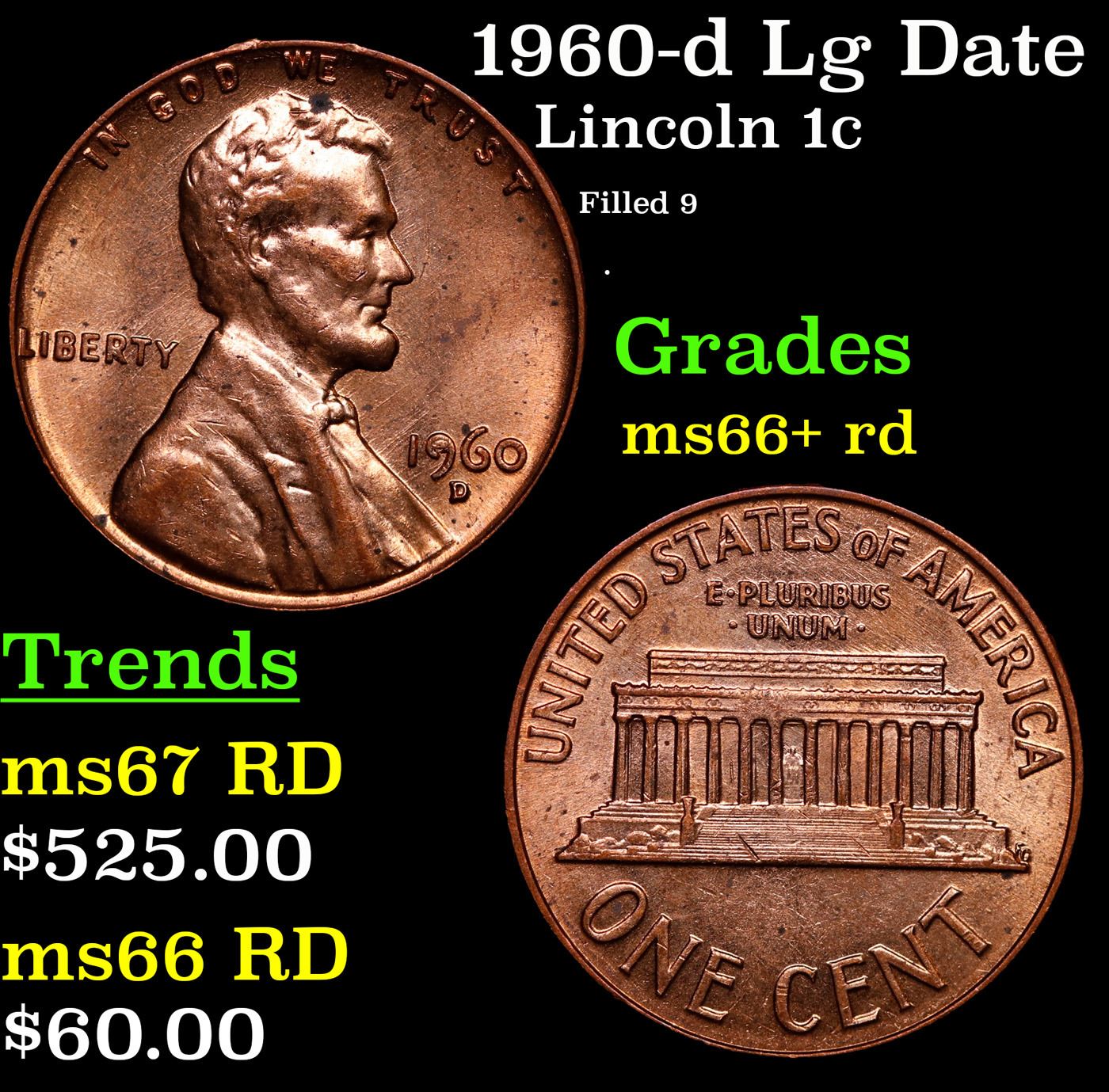 1960-d Lg Date *Mint Error* Lincoln Cent 1c Grades GEM++ RD.