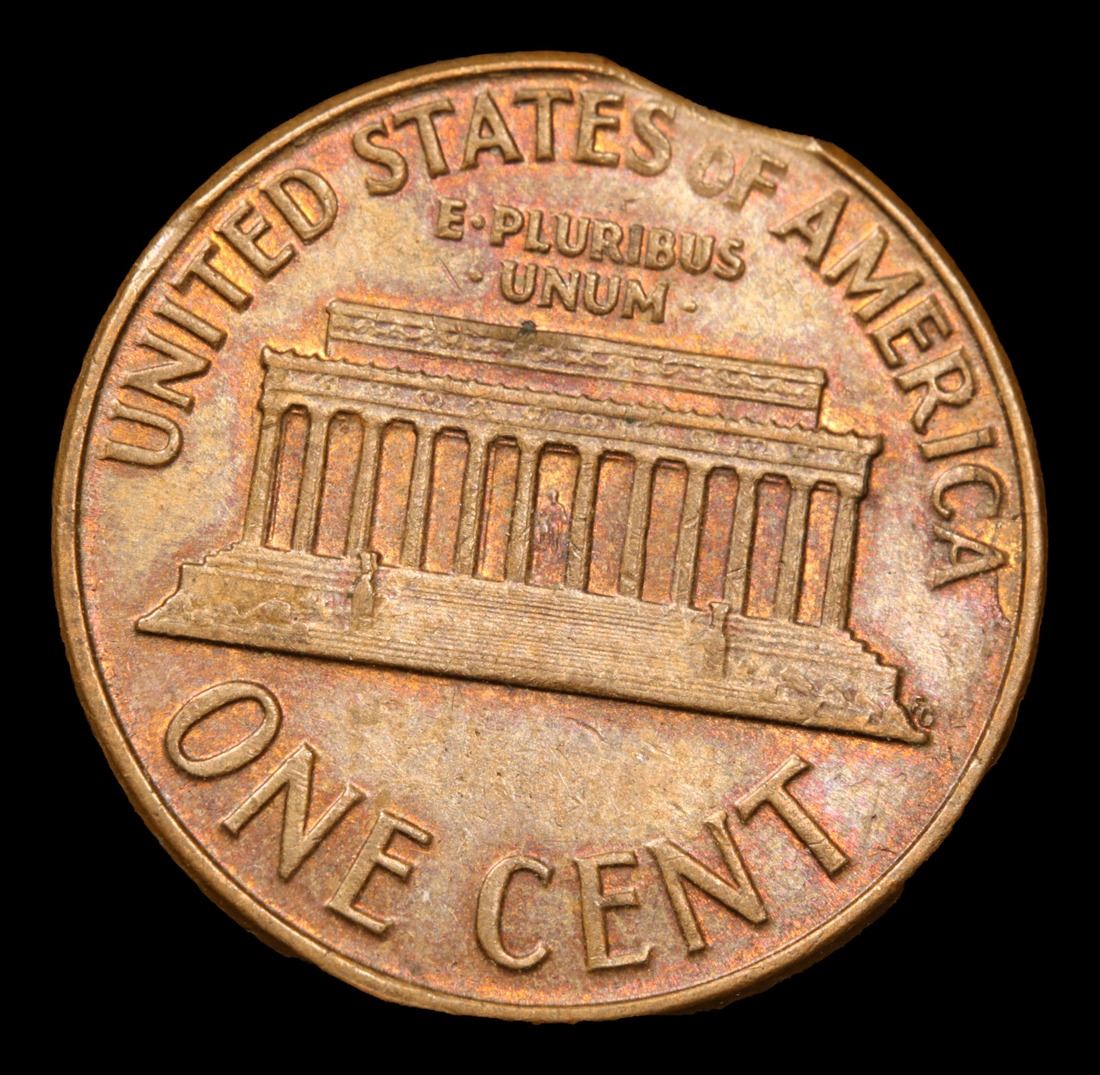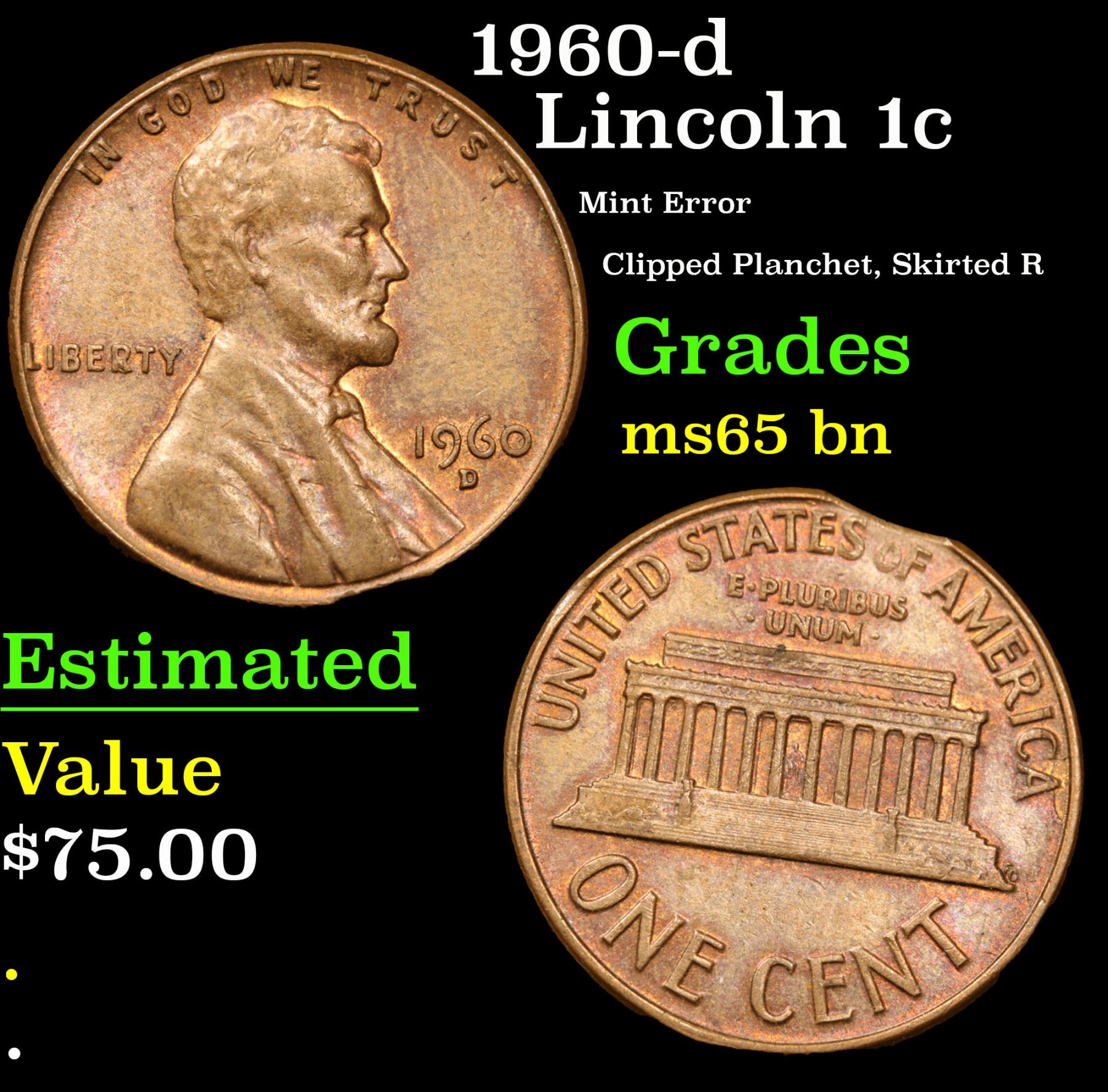 1960-d Mint Error Clipped Planchet, Skirted R Lincoln Cent 1c Grades GEM Unc BN.