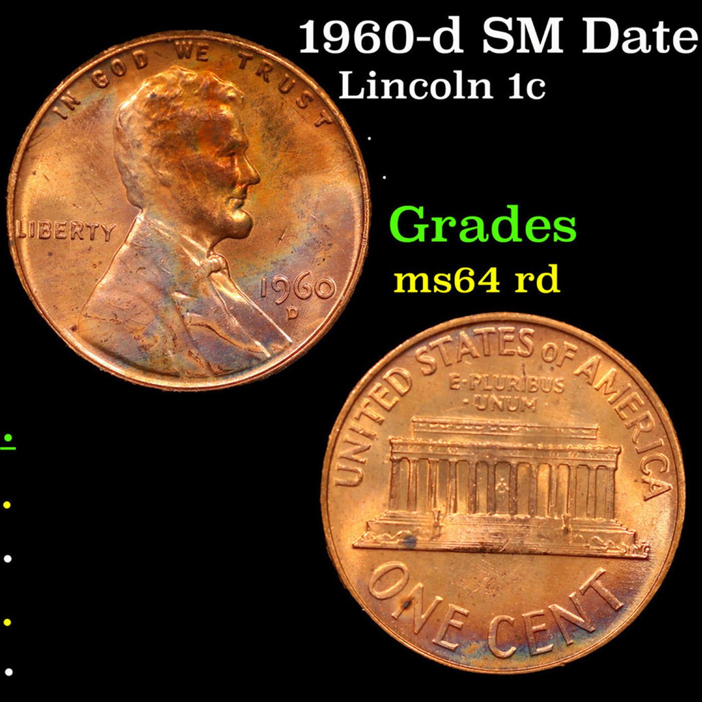 1960-d SM Date Lincoln Cent 1c Grades Choice Unc RD.
