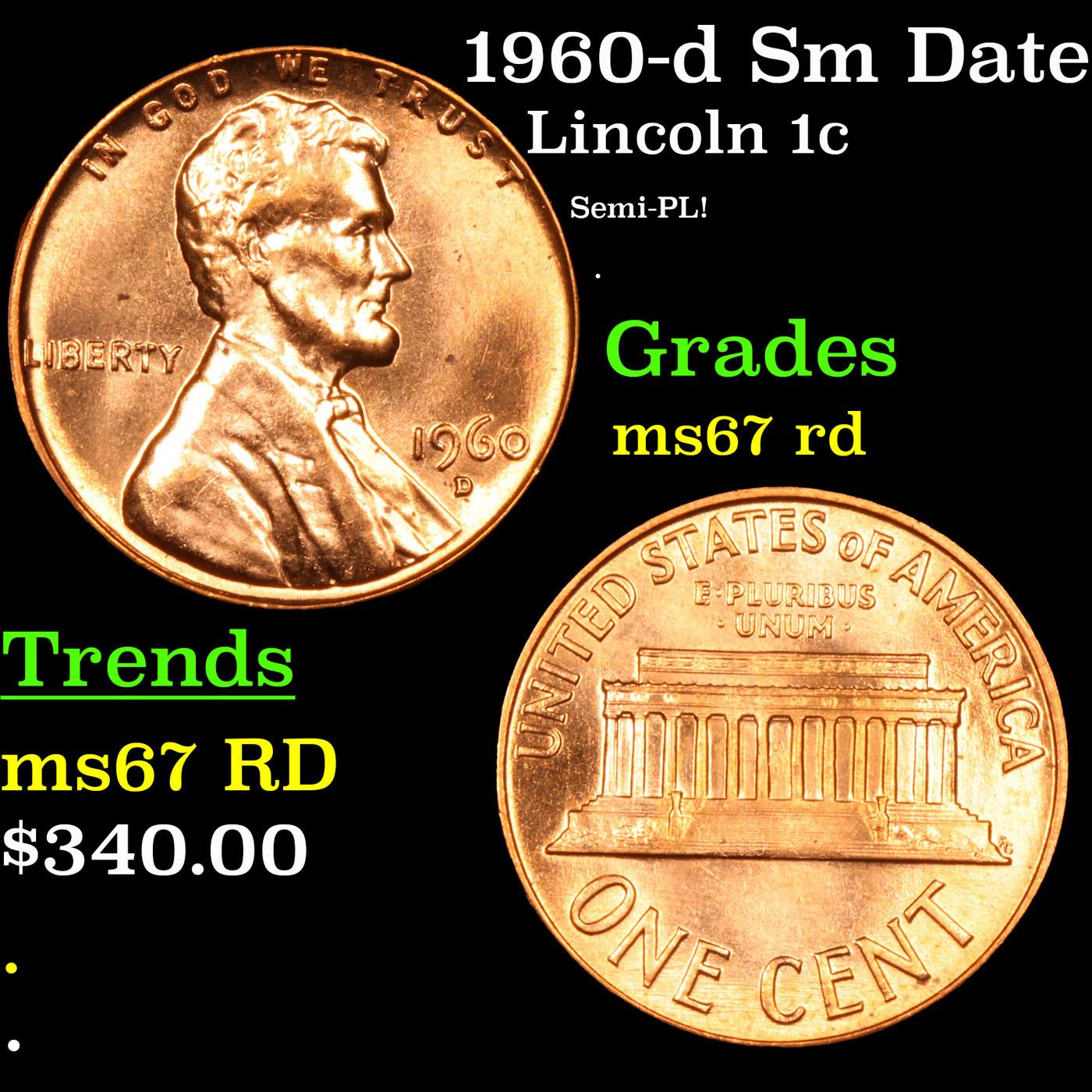 1960-d Sm Date Lincoln Cent 1c Grades GEM++ Unc RD.