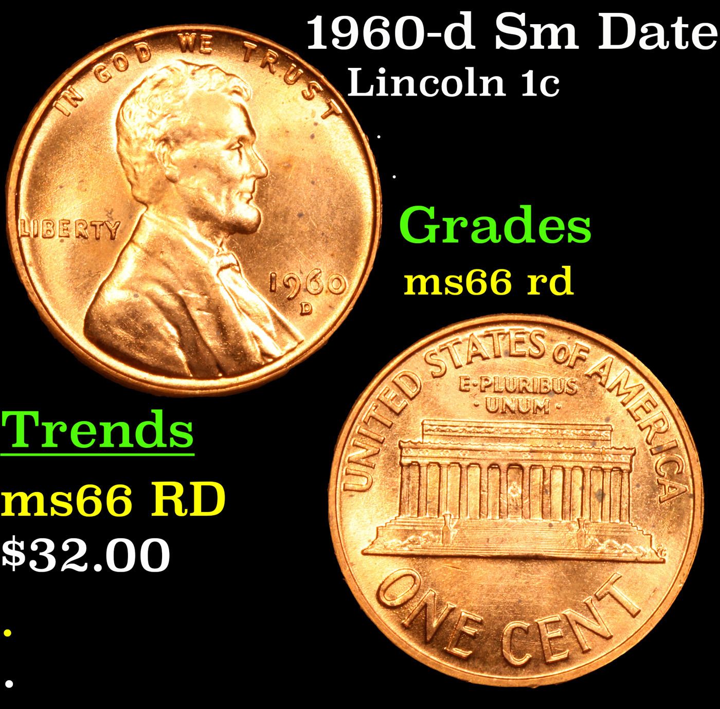 1960-d Sm Date Lincoln Cent 1c Grades GEM+ Unc RD.