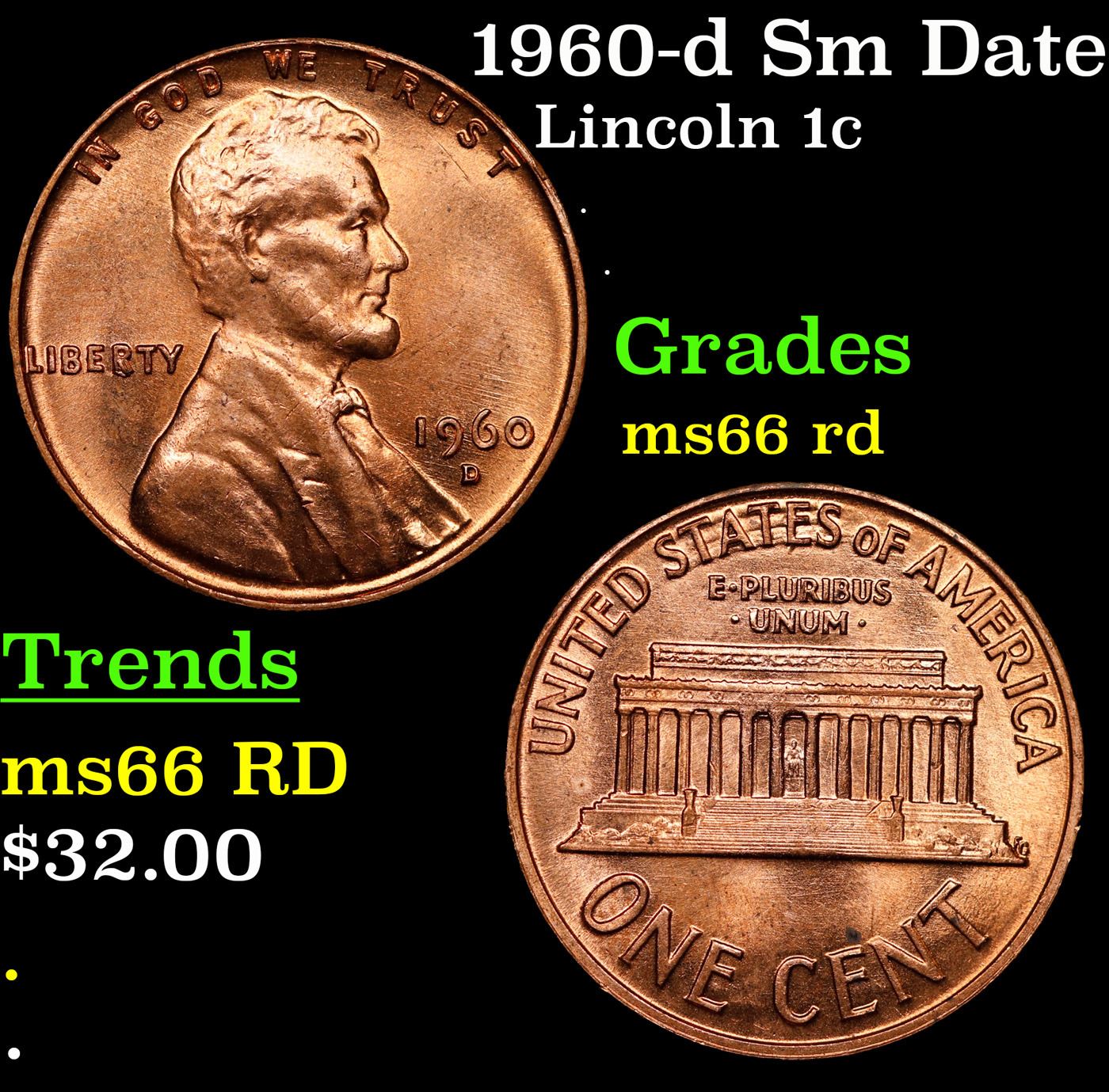 1960-d Sm Date Lincoln Cent 1c Grades GEM+ Unc RD.