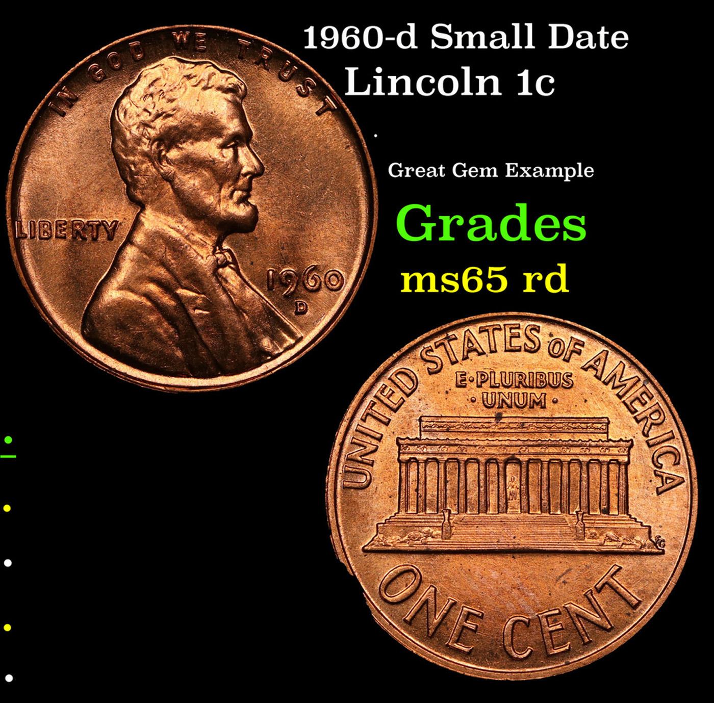 1960-d Small Date Lincoln Cent 1c Grades GEM Unc RD.