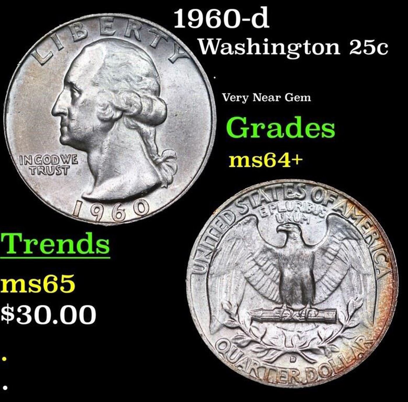 1960-d Washington Quarter 25c Grades Choice+ Unc.
