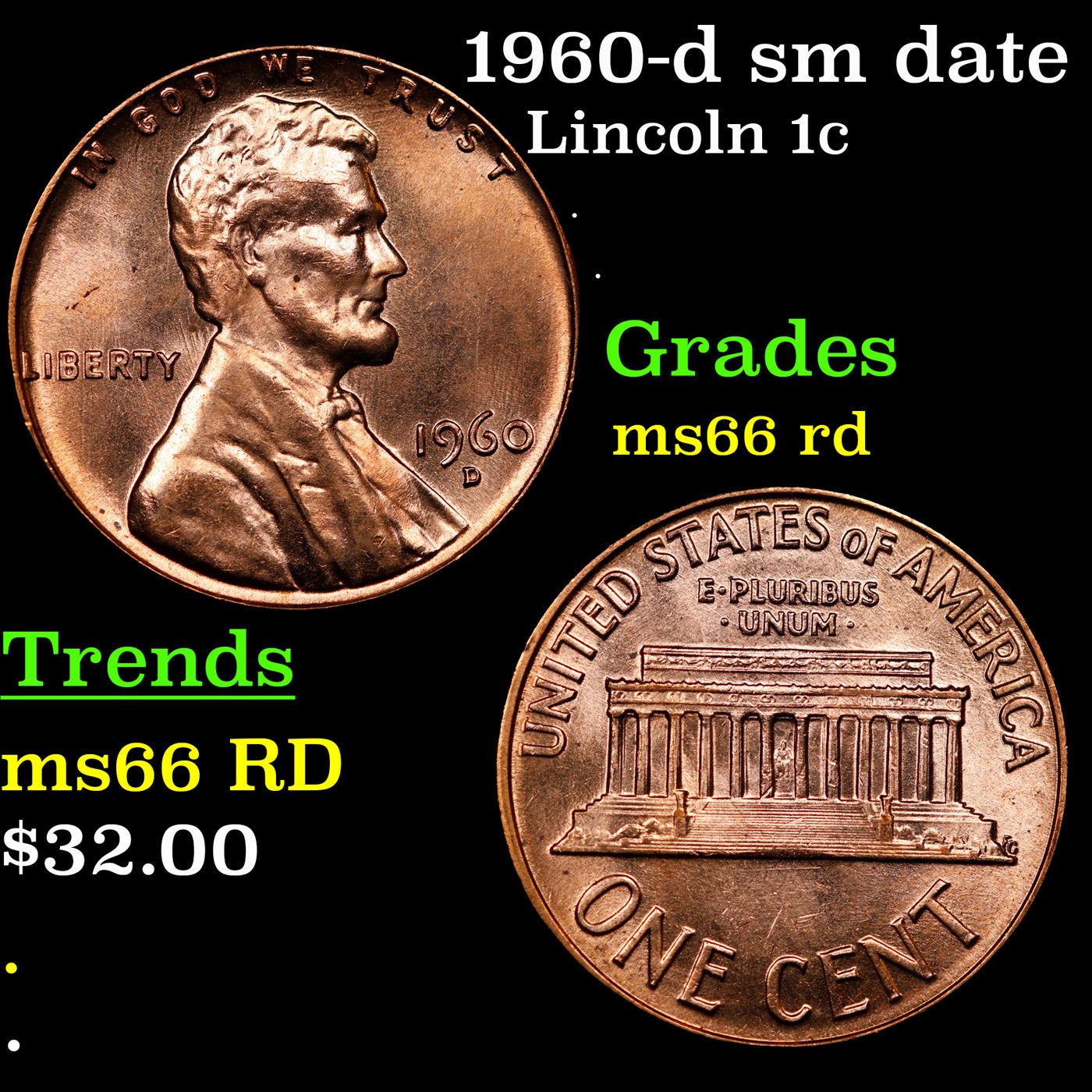 1960-d sm date Lincoln Cent 1c Grades GEM+ Unc RD.