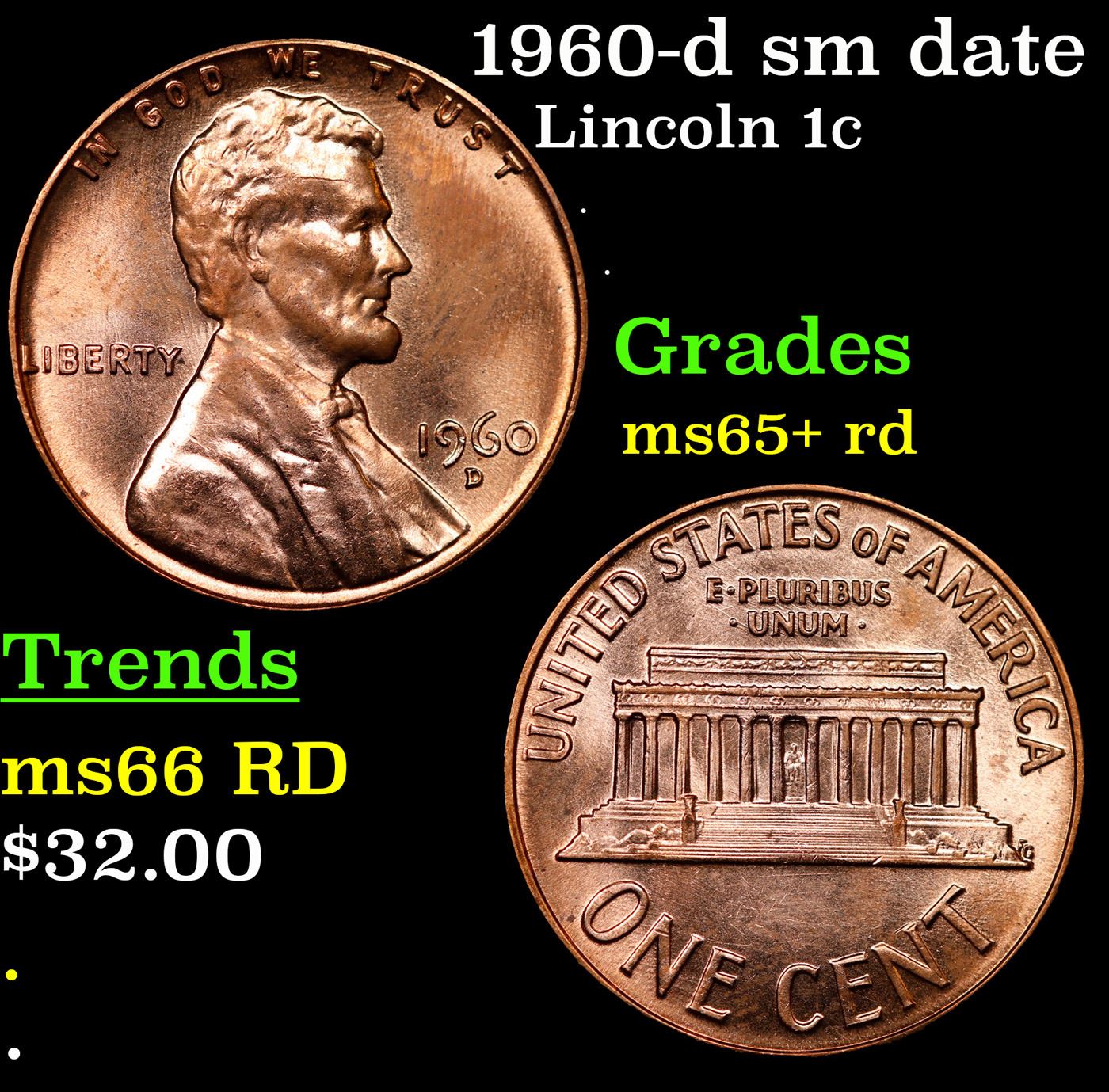 1960-d sm date Lincoln Cent 1c Grades Gem+ Unc RD.