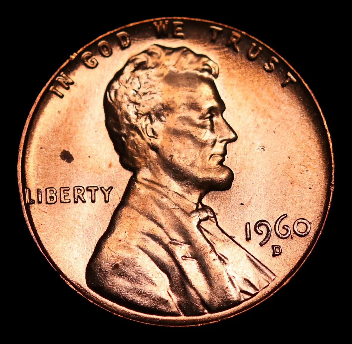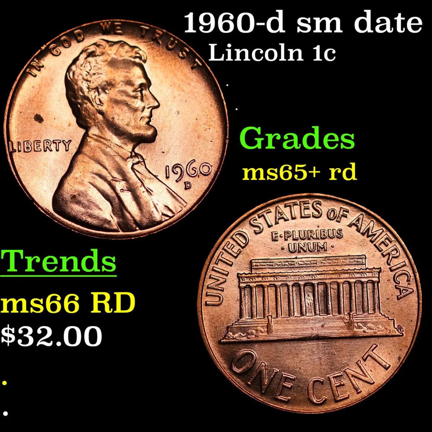1960-d sm date Lincoln Cent 1c Grades Gem+ Unc RD.
