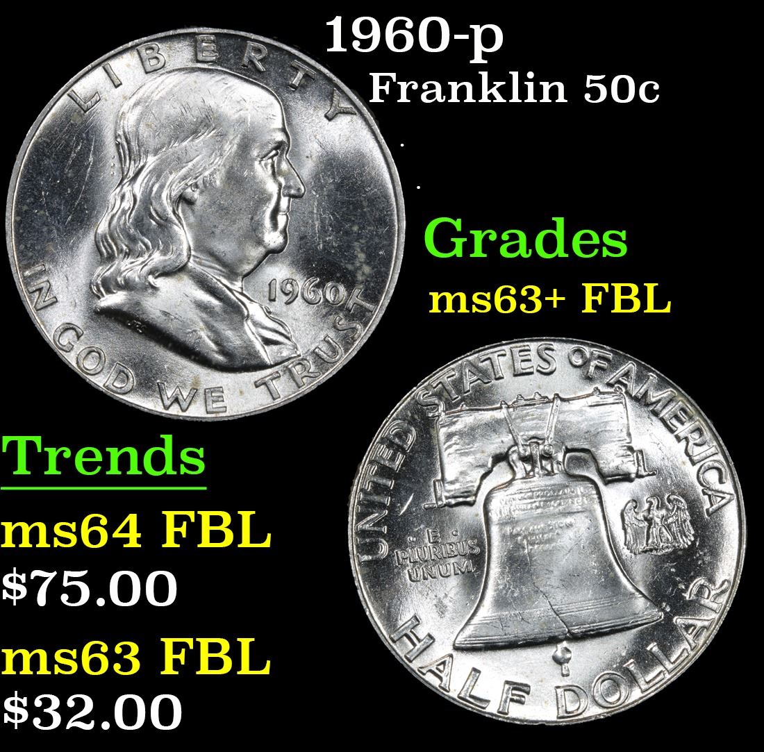 1960-p Franklin Half Dollar 50c Grades Select Unc+ FBL.