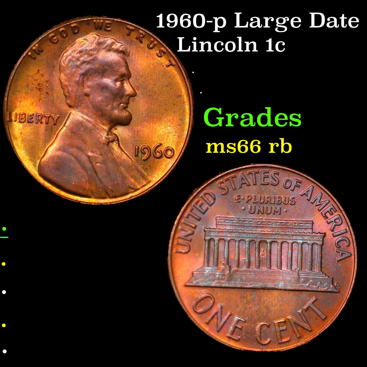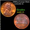 1960-p Large Date Lincoln Cent 1c Grades GEM+ Unc RB.