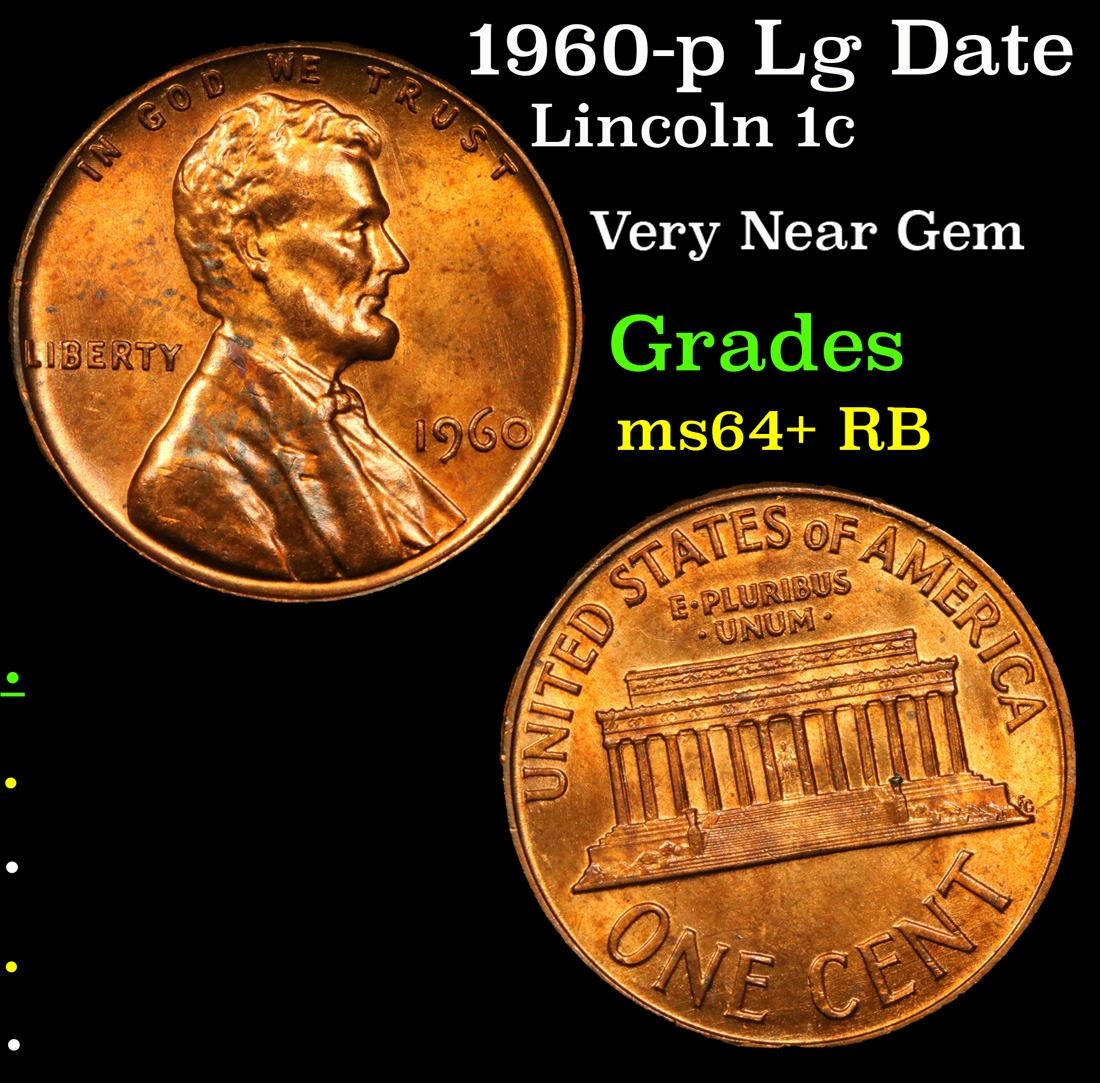 1960-p Lg Date . Very Near Gem Lincoln Cent 1c Grades Choice+ Unc RB.