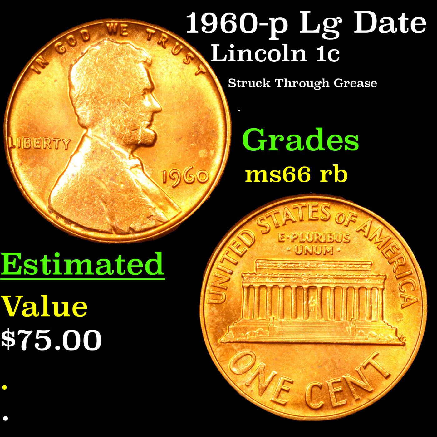 1960-p Lg Date Mint Error Lincoln Cent 1c Grades GEM+ Unc RB.