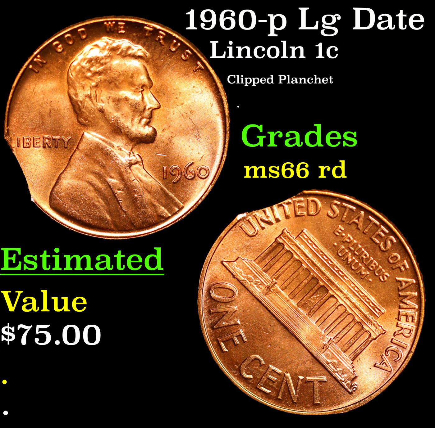 1960-p Lg Date Mint Error Lincoln Cent 1c Grades GEM+ Unc RD.