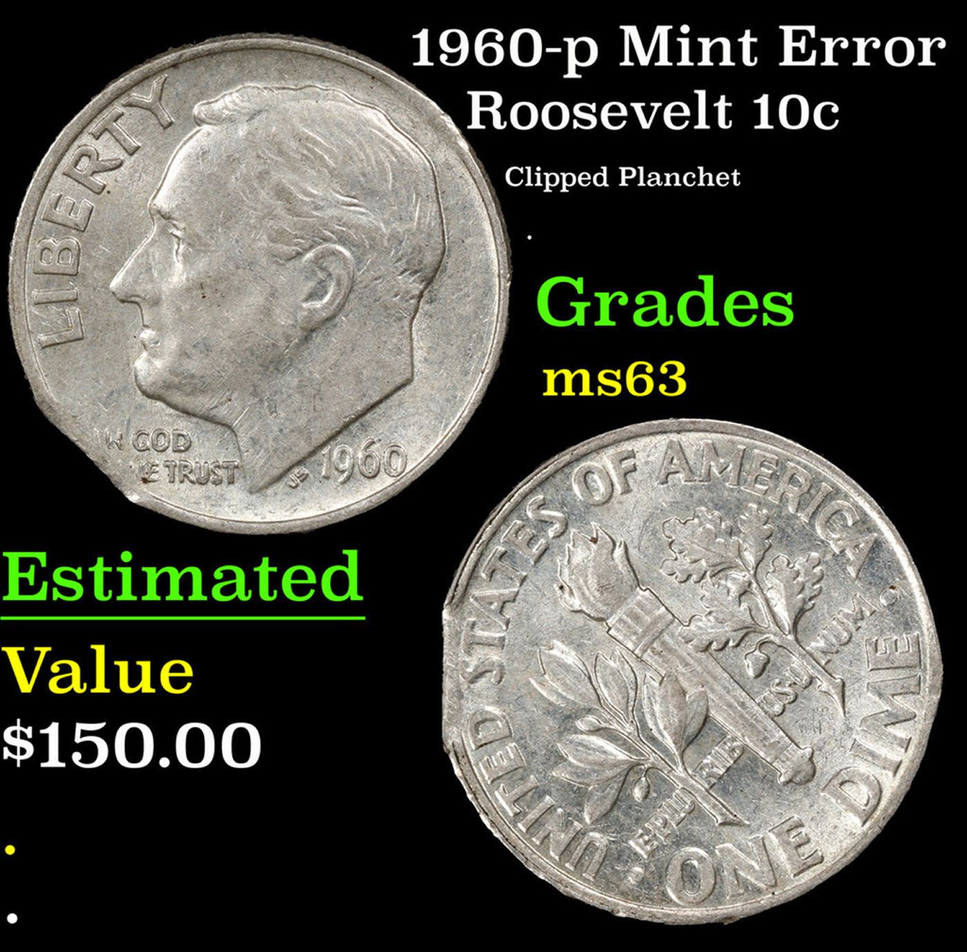1960-p Mint Error Roosevelt Dime 10c Grades Select Unc.