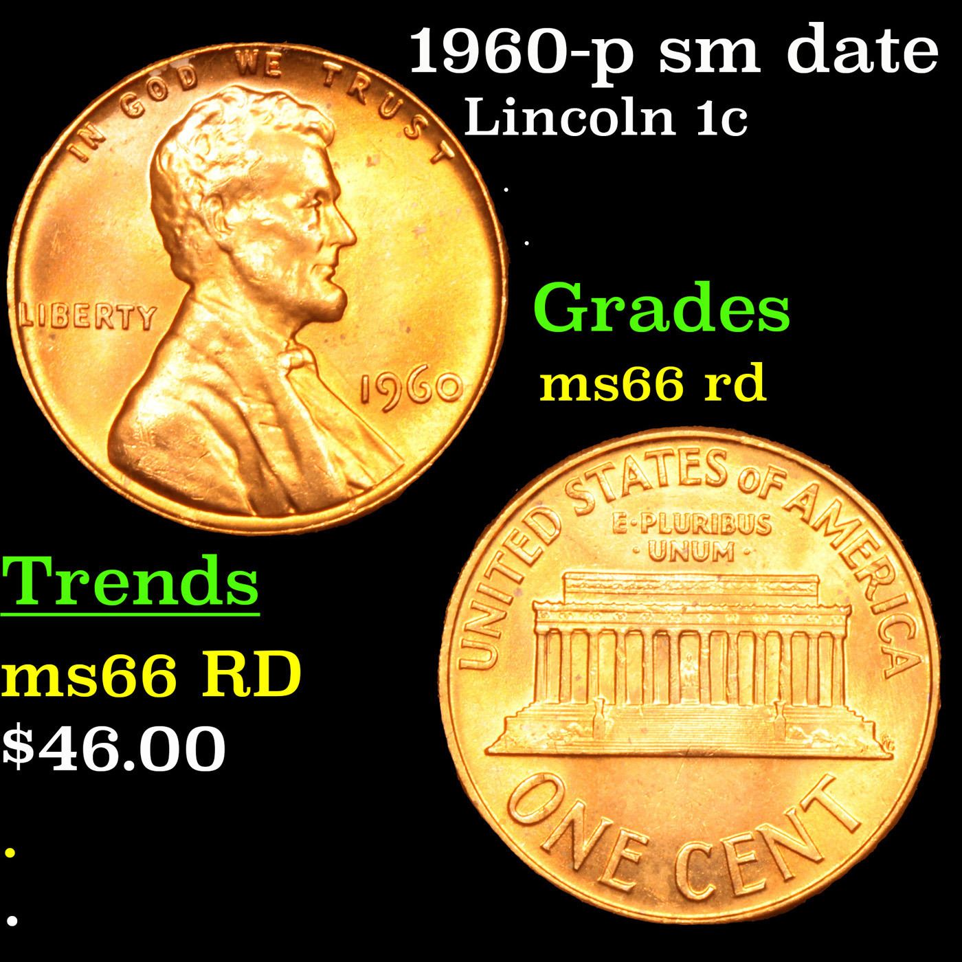 1960-p sm date Lincoln Cent 1c Grades GEM+ Unc RD.