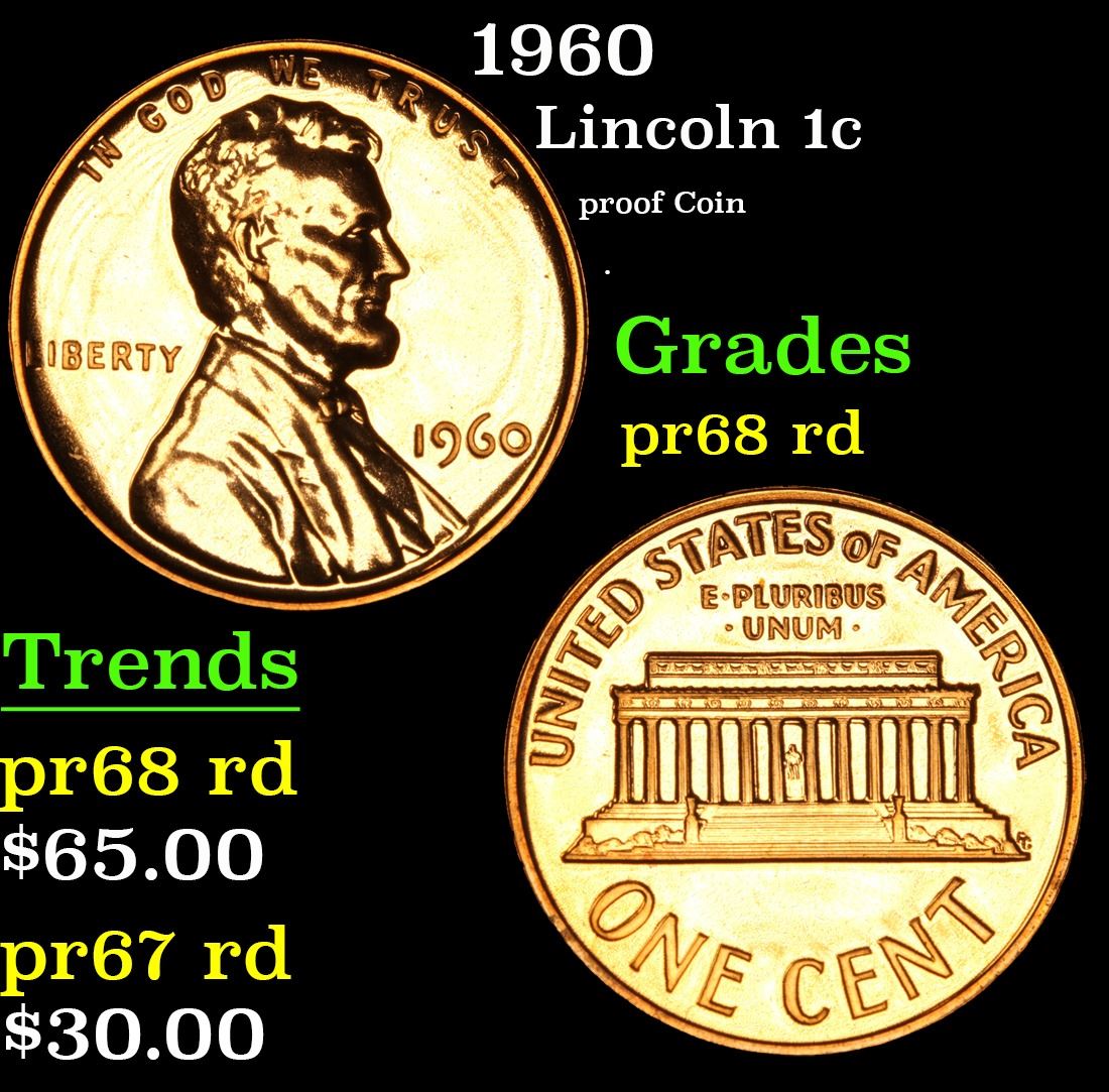 1960 proof Coin . Lincoln Cent 1c Grades Gem++ Proof Red.