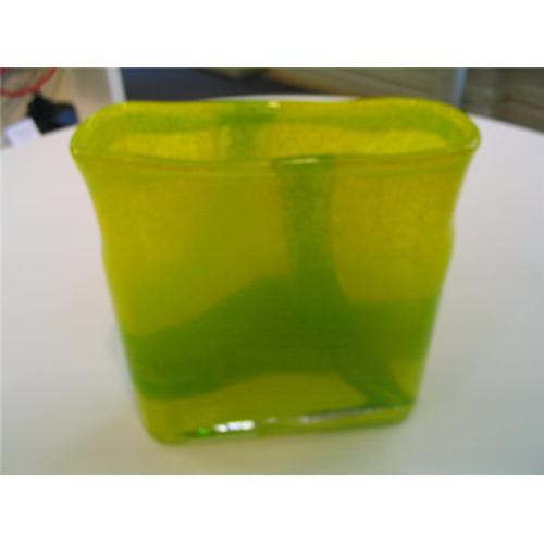 6.Lemon yellow and cerise rectangular vase 1960?s 8? tall-