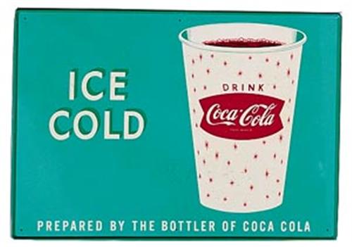 20"x28" nice simple period graphics. Good gloss, color, and shine. 3-4 small areas of shallow dents or crimps mostly only visible when the glare of light hits it right. Otherwise a few minor marks and surface tiny scratches, very clean frame with just a few minor bends and paint nicks. Cond. 8.3-8.6, but displays much better.