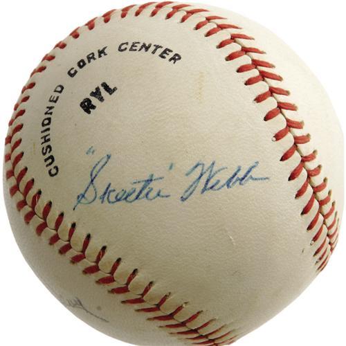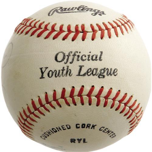 <B>1960's Dizzy Dean Signed Baseball.</B></I> "The good Lord was good to me," Dizzy once said. "He gave me a strong body, a good right arm, and a weak mind." It was as much for his easy country charm as for his tremendous skills that Dean was a beloved fixture of the Gas House Gang-era Cardinals, and a successful broadcaster in the years following his playing days. This "Official Youth League" ball was almost certainly signed as Dean tended to his radio duties, and his side panel autograph presents as an 8/10 single. An autograph from "Skeeter" Webb on the side panel is all that saves this one from being a rare and very expensive single, but upon display the ball will fool them all. <I>LOA from PSA/DNA.</B></I> <BR><BR><B>Important notice:</B> Heritage usually auctions material at the rate of 200-250 lots per hour. On some occasions eBay Live bid software or the Internet may not be able to keep up with the pace of the auction. We recommend placing a realistic absentee bid now as insurance to avoid disappointment. Occasionally the auctioneer may eliminate or reject an eBay Live bid, and the auctioneer may also reopen a lot after the close of the eBay live bidding (usually because we missed an audience bid), and may reject your bid even if it shows you as the winning bidder. By bidding via eBay Live, you agree that Heritage may award the lot to another bidder at its sole discretion under the circumstances described above or any other reasonable circumstances. Since eBay bids are not shown to us until we open the lot on the floor, we treat those bids just like floor bids. In most cases the floor responds before the eBay bid is presented to us, due to Internet lag time, so for consistency we have made it a policy that floor bids are always considered first over tie eBay live bids. Also please note that all Heritage lots purchased through eBay Live carry a 22.5% Buyer's Premium. Please make sure you read the Terms and Conditions before you bid. This lot is being auctioned in conjunction with a live floor auction by Heritage Galleries & Auctioneers. All final auction and invoice information will be supplied by Heritage Galleries & Auctioneers, and all other information should be considered preliminary. Lot:19024 <BR><BR><B>Winning Notification and Billing:</B> After the FINAL session in this auction is complete, Heritage will send e-mail and snail mail invoices. This process normally takes several days. All final auction and invoice information will be supplied by Heritage Galleries & Auctioneers, and all other information should be considered preliminary. <BR><BR>This auction will be conducted on a live auction floor and over the Internet through eBay Live. If you choose to place an absentee bid, please take a moment to <font color='#0000ff'><u><a href='http://pages.ebay.com/liveauctions/help/before/laabsentee.html'>learn how eBay Live absentee bidding works</a></u></font><font color='#000000'>