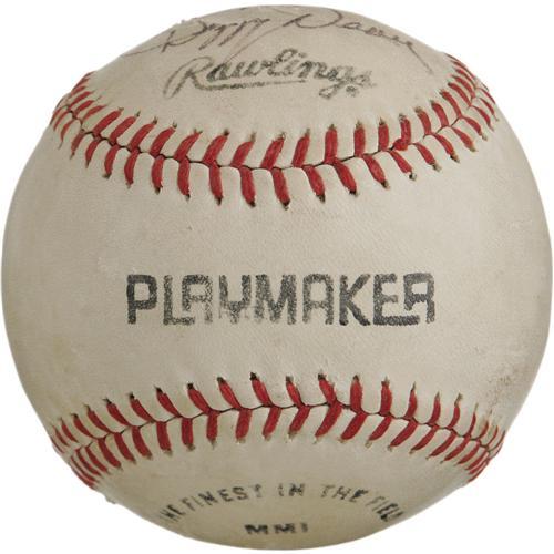 <B>1960's Dizzy Dean Single Signed Baseball.</B></I> The ringleader of the historic Gashouse Gang of 1934, Dean was once quoted as saying, "Anybody who's ever had the privilege of seeing me play knows that I am the greatest pitcher in the world." While some might disagree with this assessment, there's certainly no question that Ol' Diz is well deserving of his Cooperstown plaque, and that any autograph collection would be the better for the addition of this "Rawlings Playmaker" ball, sporting a 9/10 side panel signature. A small scuff just nicks the signature to little effect, and is noted for accuracy's sake only. Fill that empty space on your Hall of Fame singles shelf with this tough, high-grade example. <I>LOA from PSA/DNA. LOA from James Spence Authentication.</B></I><BR><BR><b>Shipping:</b> Balls, Pucks, etc., Small (<a target="_blank" href="http://www.heritageauctions.com/common/shipping.php">view shipping information</a>)