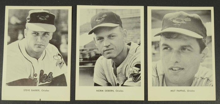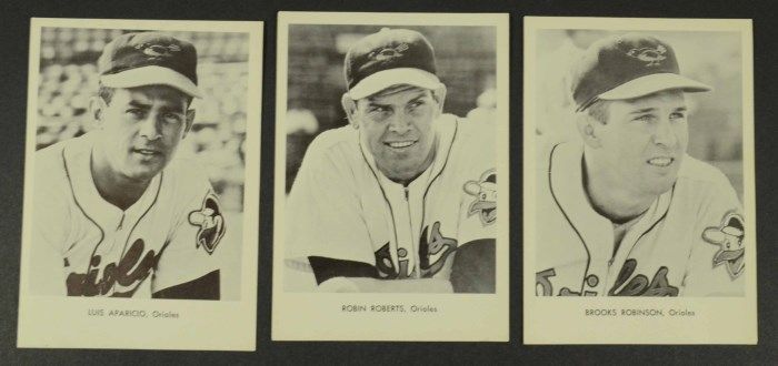 12- ORIOLES BLACK & WHITE PHOTOS, INCLUDES LUIS APARICIO, ROBIN ROBERTS & BROOKS ROBINSON PLUS OTHER STARS, IN ORIGINAL ENVELOPE, NICE CONDITION, EST $50-$60