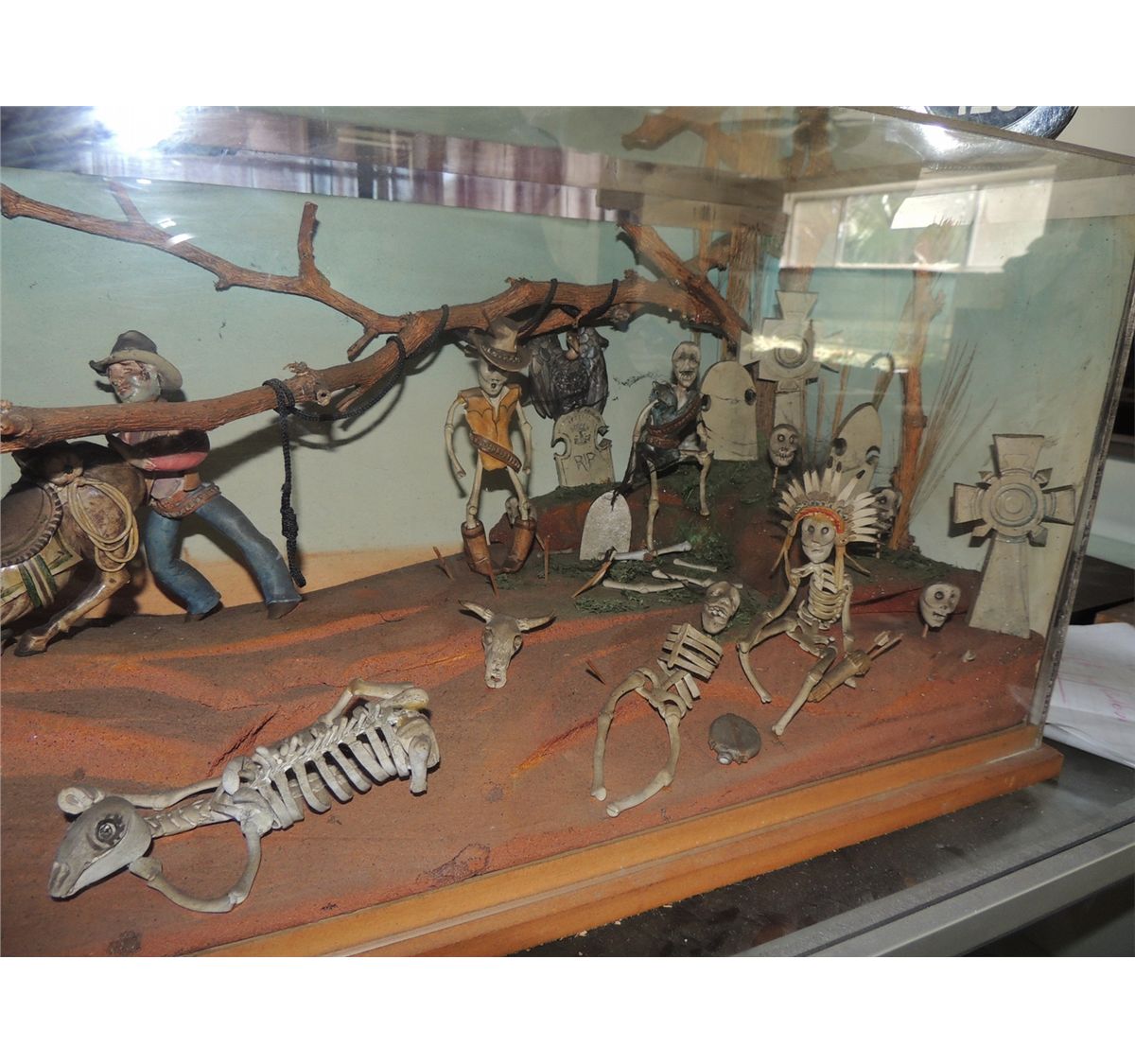 You may notice some figures do not have hands, I asked him about that, and he said that hands were difficult to sculpt at that scale, and they were not important to the purpose of the dioramas, which was to create the life size figures for Shooting galleries at Knott's Berry Farm, and Calico Ghost town.