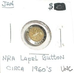 1960's NRA LAPEL BUTTON *RARE UNC CIRCA - NICE BUTTON*!! ***Coin, Currency & All Items Listed in this auction - Grades, Conditions and Values are not Safe Deposit Coins LLC Responsibilty. Grades, Condition and Values are determined by Consigner(s) & Buyers ONLY***