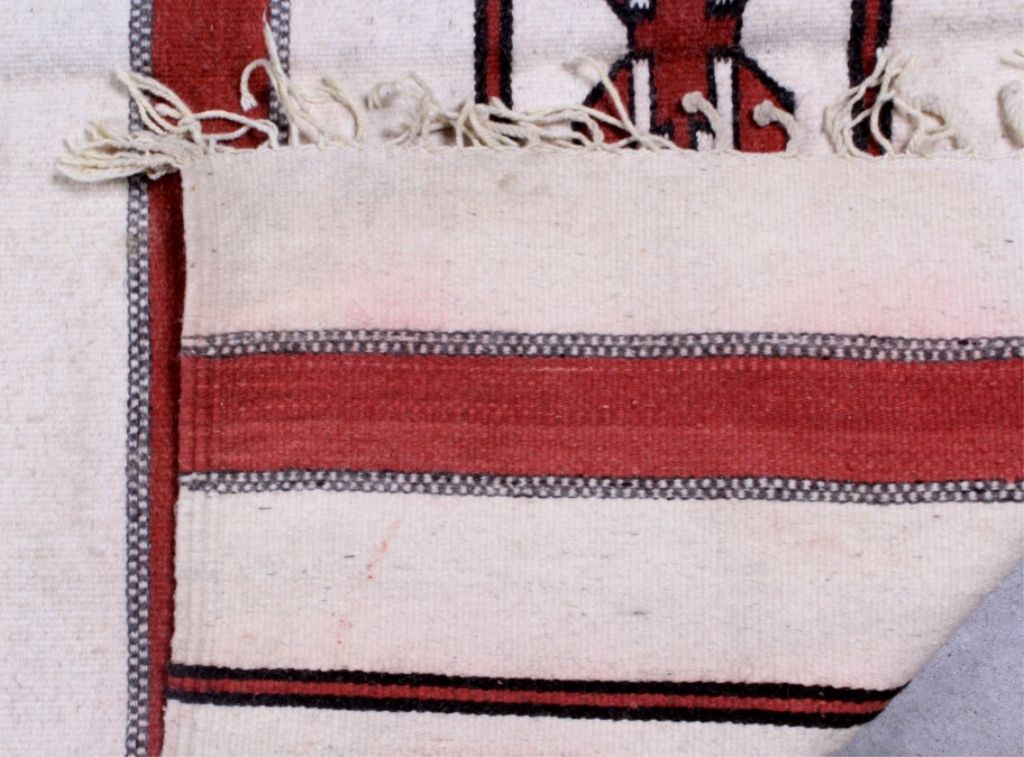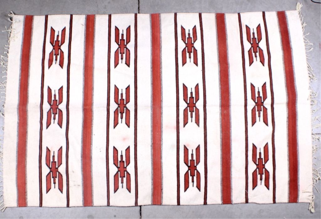 This lot features a Navajo rug from the 1960's. It is 100% wool and handmade. This Crystal pattern rug is in good condition. It measures 54" x 84".