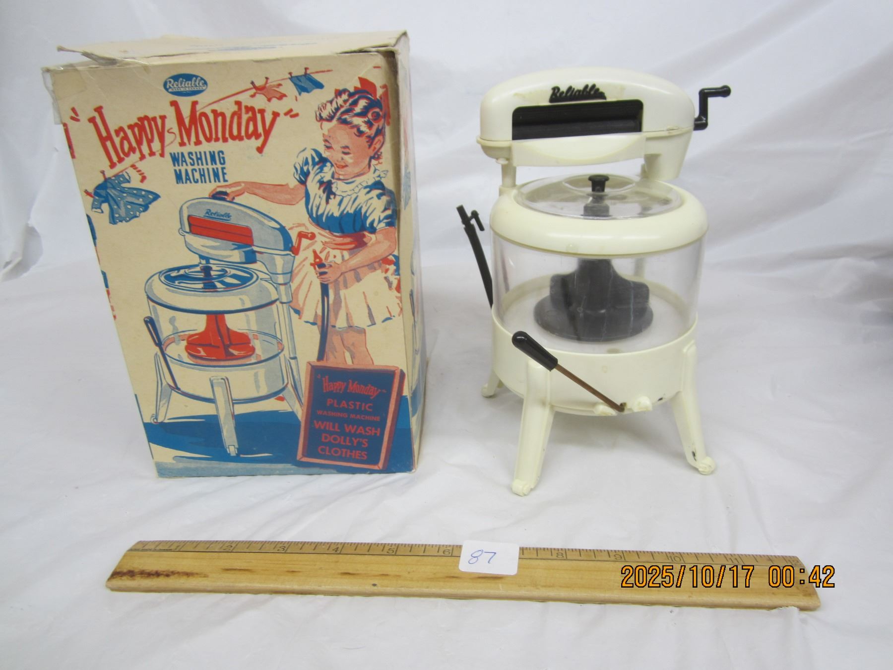 1960's Reliable Happy Monday Dolly Washing Machine with Original Box in Good Condition