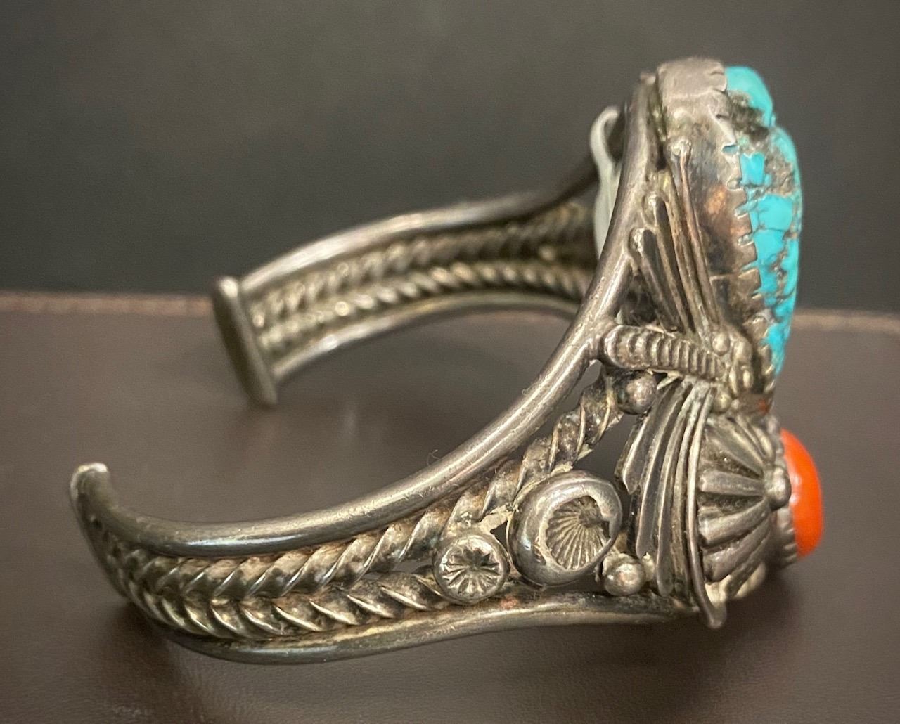 Bracelets measurements are opening, inside circumference, height. Weights are in Grams and are weighed to the best of our ability. The term signed means that, in our opinion, the signature is by the artist. All dating, Turquoise and hallmark attributions are to the best of our knowledge. Attributions are subjective and should be taken as such. Attributions in the description of any lot is left to the buyer to determine accuracy and the gallery is not responsible for any errors or omissions.