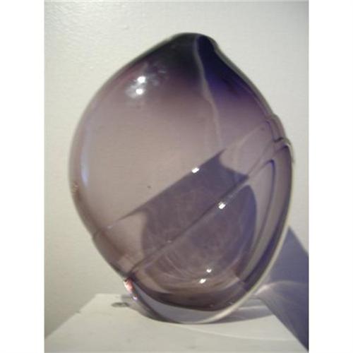 Teardrop shaped violet blue 1960?s vase with small mouth and wave pattern. 9.5 In. High