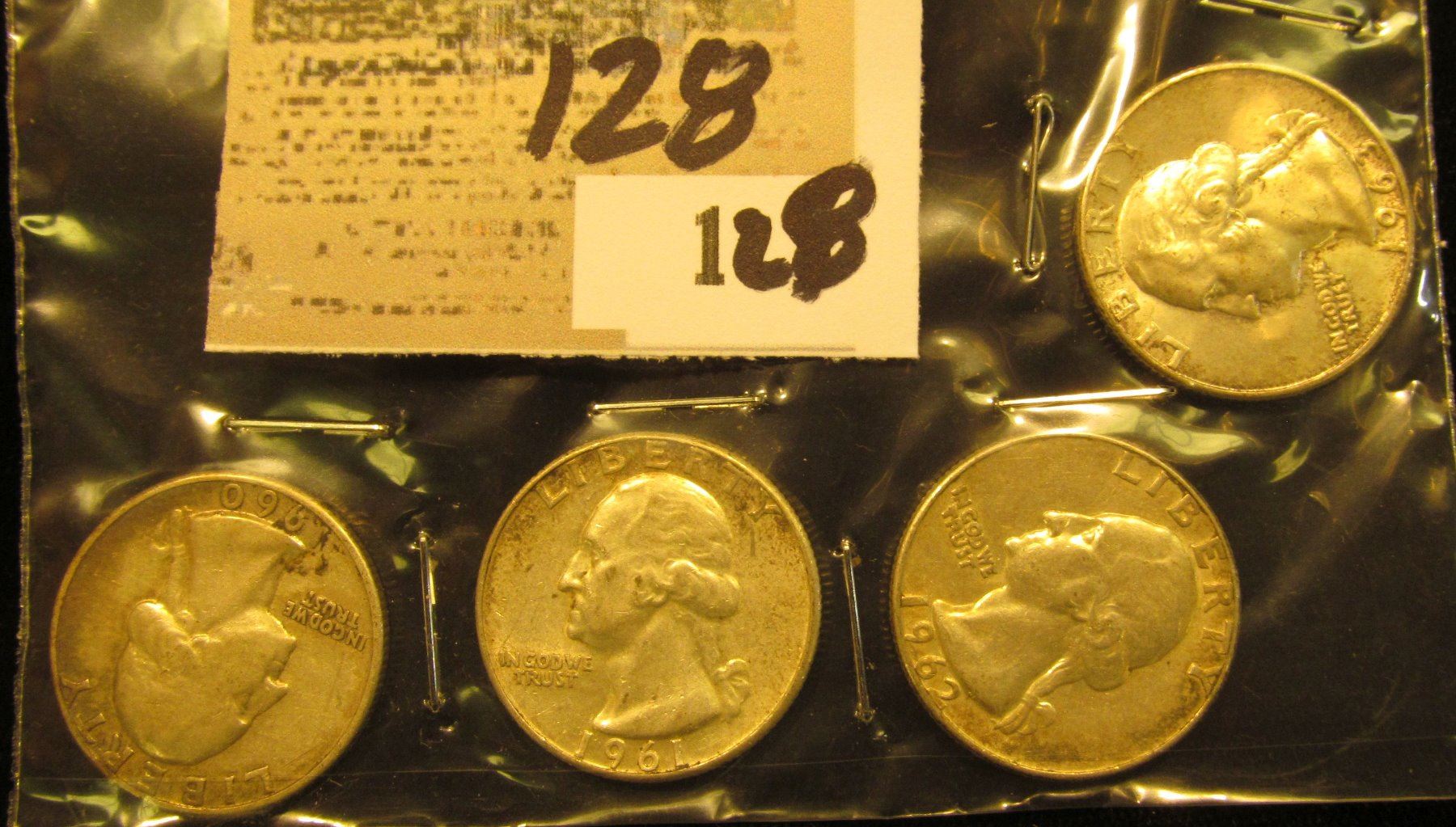 1960P, 61P, 62P, & 63P U.S. Silver Washington Quarters.