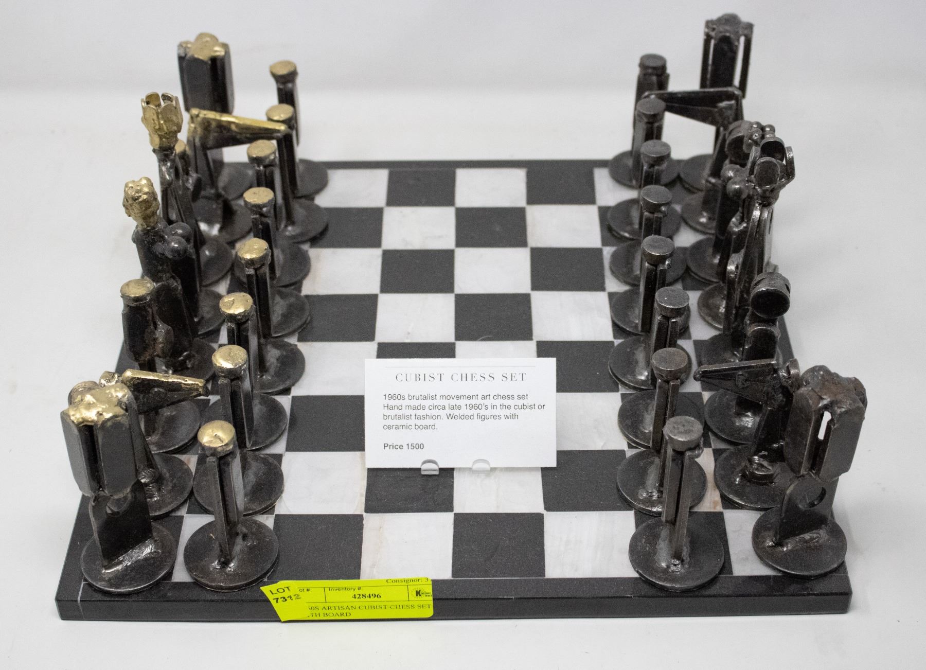 1960S ARTISAN CUBIST CHESS SET WITH BOARD