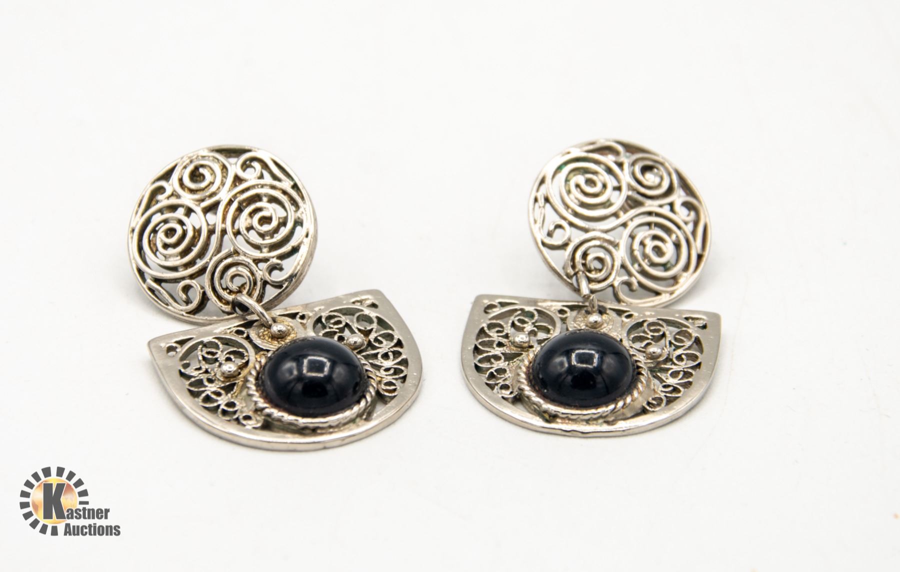 1960S FILIGREE EARRINGS WITH BLACK STONE
