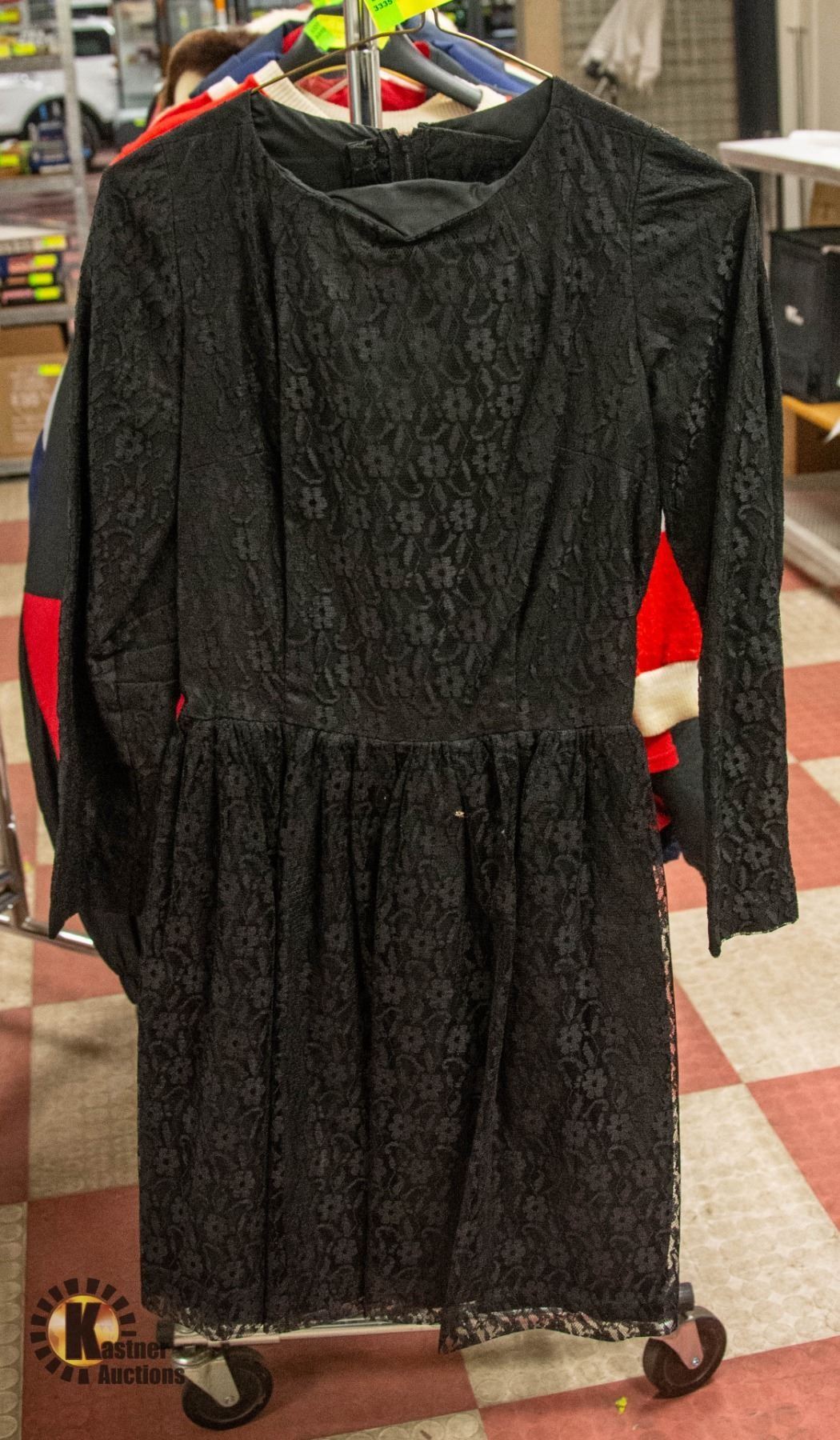 1960S LADIES BLACK LACE DRESS SZ SMALL