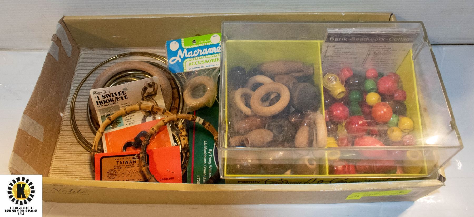 1960S MACRAME BEADS, VINTAGE CONTAINER