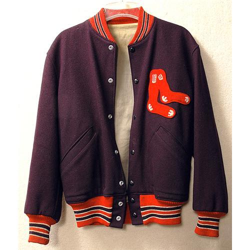 <Our item number 140178><B>1960s Boston Red Sox Jacket.</B> Team issued wool jacket, dark blue and red. No label but small size. A few small moth holes and some wear to knit portion at neck and waist. With a good cleaning very wearable and attractive. <BR>Estimated Value $300 - 500. <BR><BR>Our item number 140178<BR><IMAGES><P ALIGN="CENTER"><IMG SRC="http://www.goldbergcoins.net/liveauction/49jpegs/140178.jpg"> </P></IMAGES>