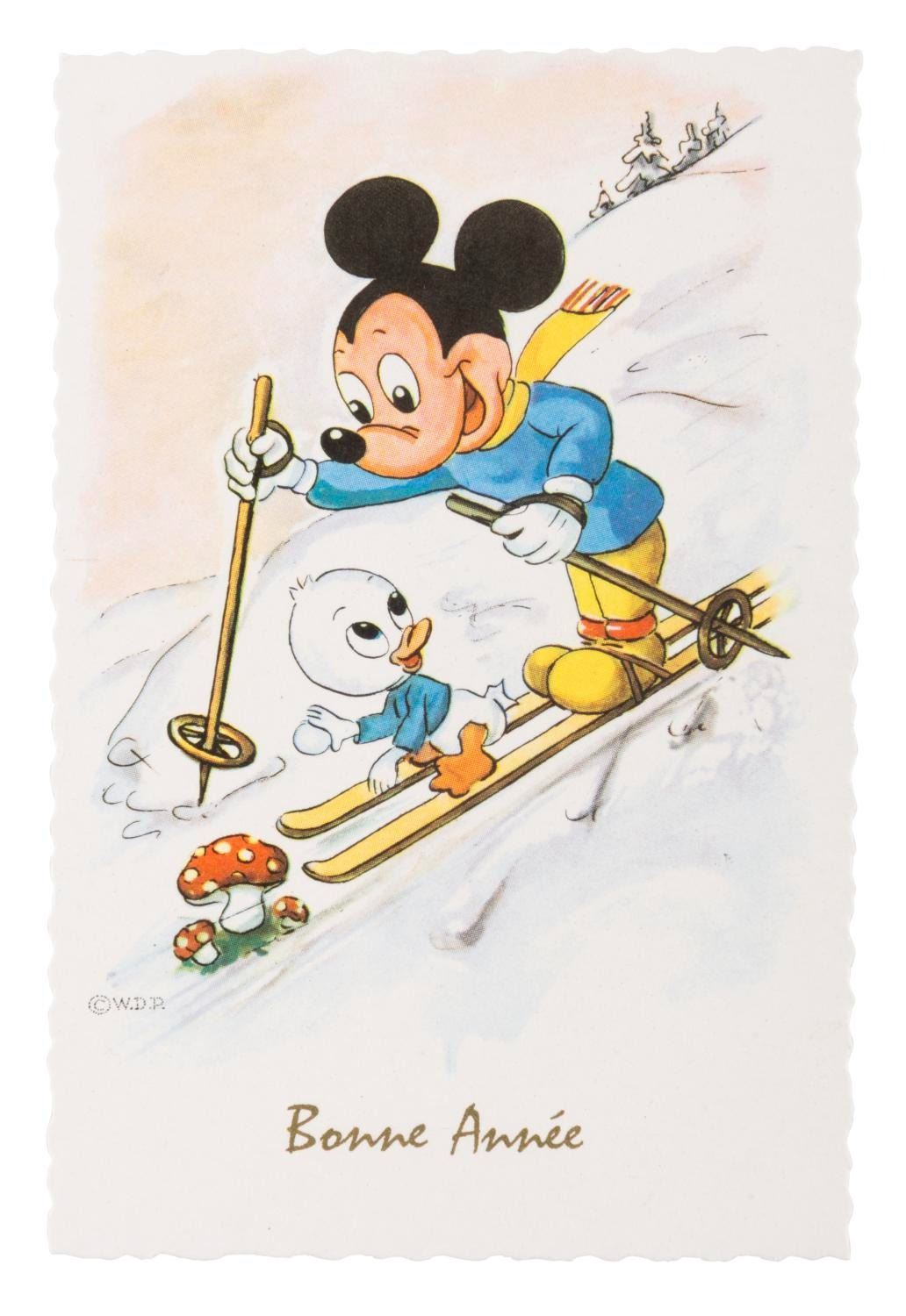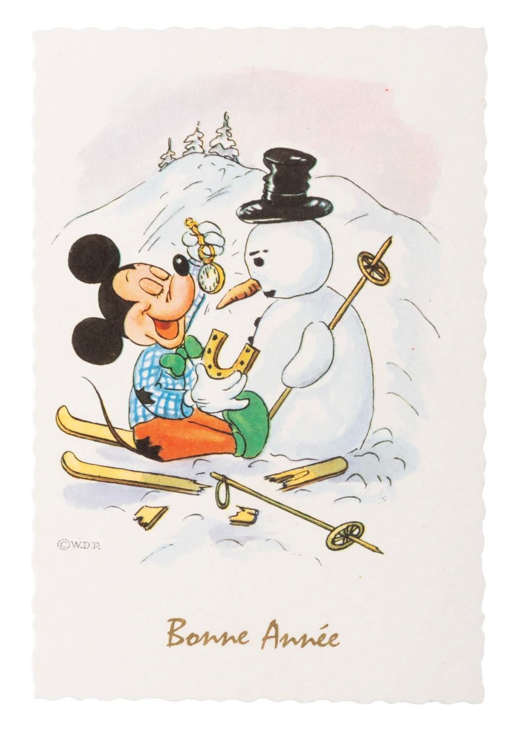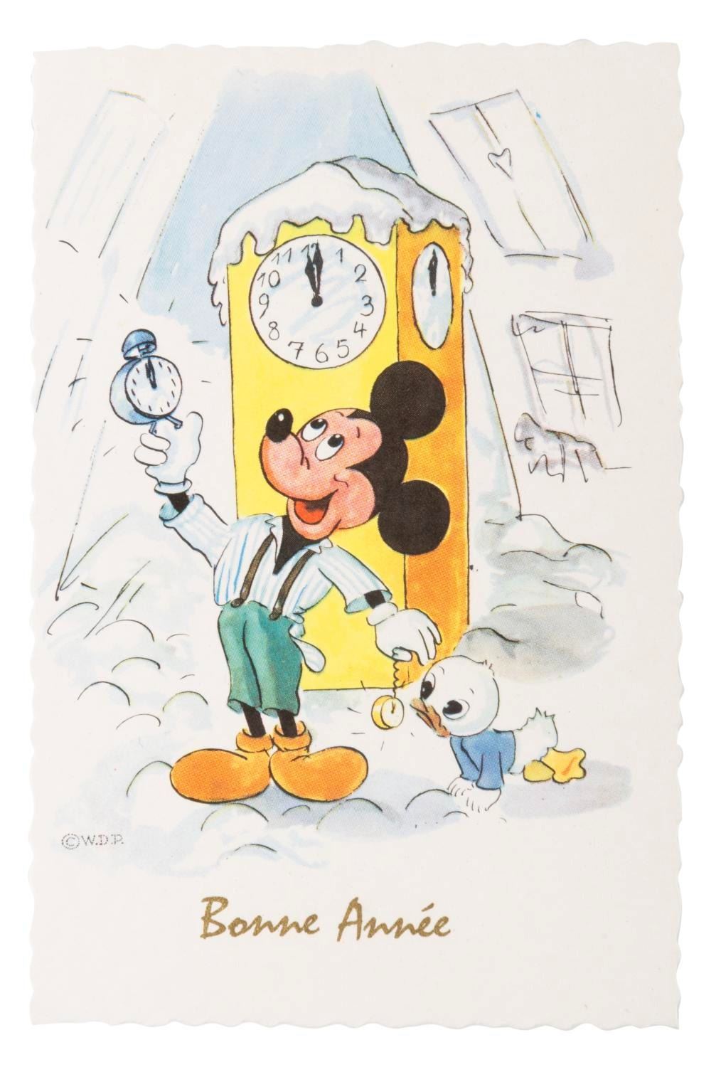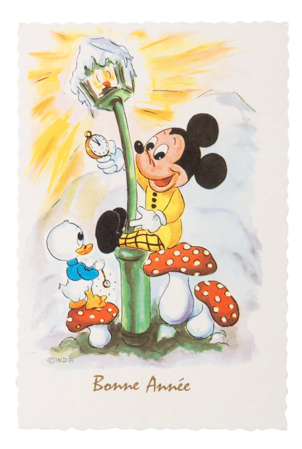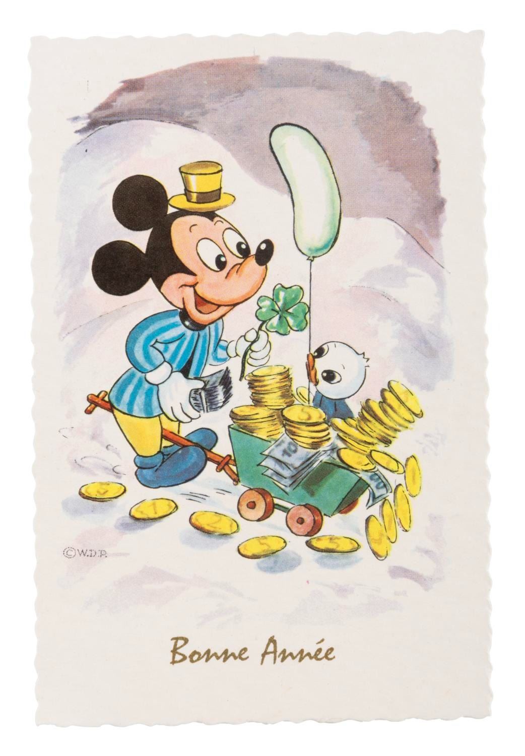 (Disney, 1960s) A set of nine French Bonne Annee (Happy New Year) cards featuring Mickey Mouse. Each measuring 2.75" x 4", the cards are in very good to fine unused condition with light pencil marks on the back.