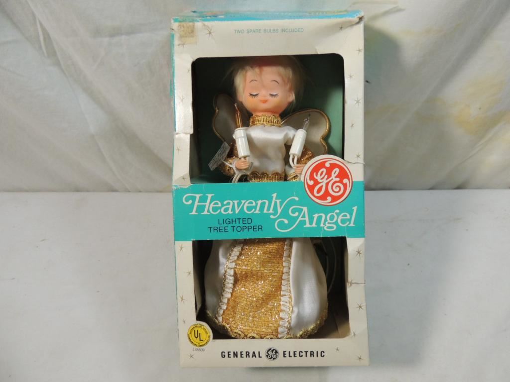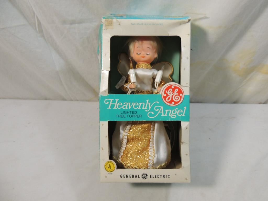 GE LIGHTED TREE TOPPER, HEAVENLY ANGEL VINTAGE LIGHTED TREE TOPPER, GE AS SHOWN SEE PHOTO FOR MORE DETAILS.