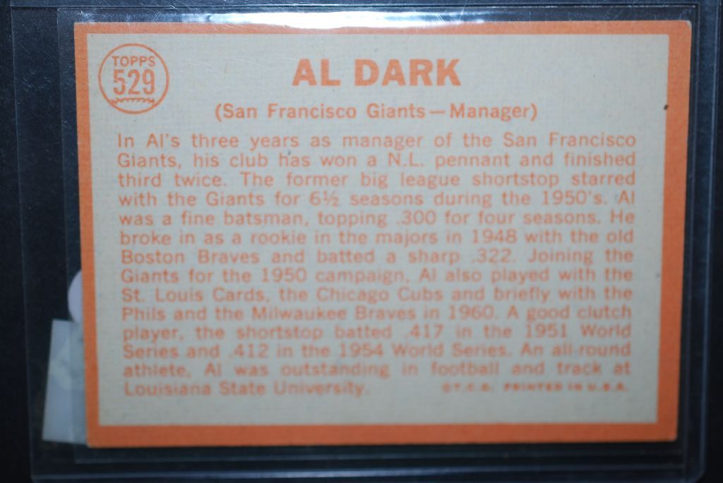 1960s MLB Al Dark Manager San Francisco Giants Baseball Trading Card; EST. $5-10