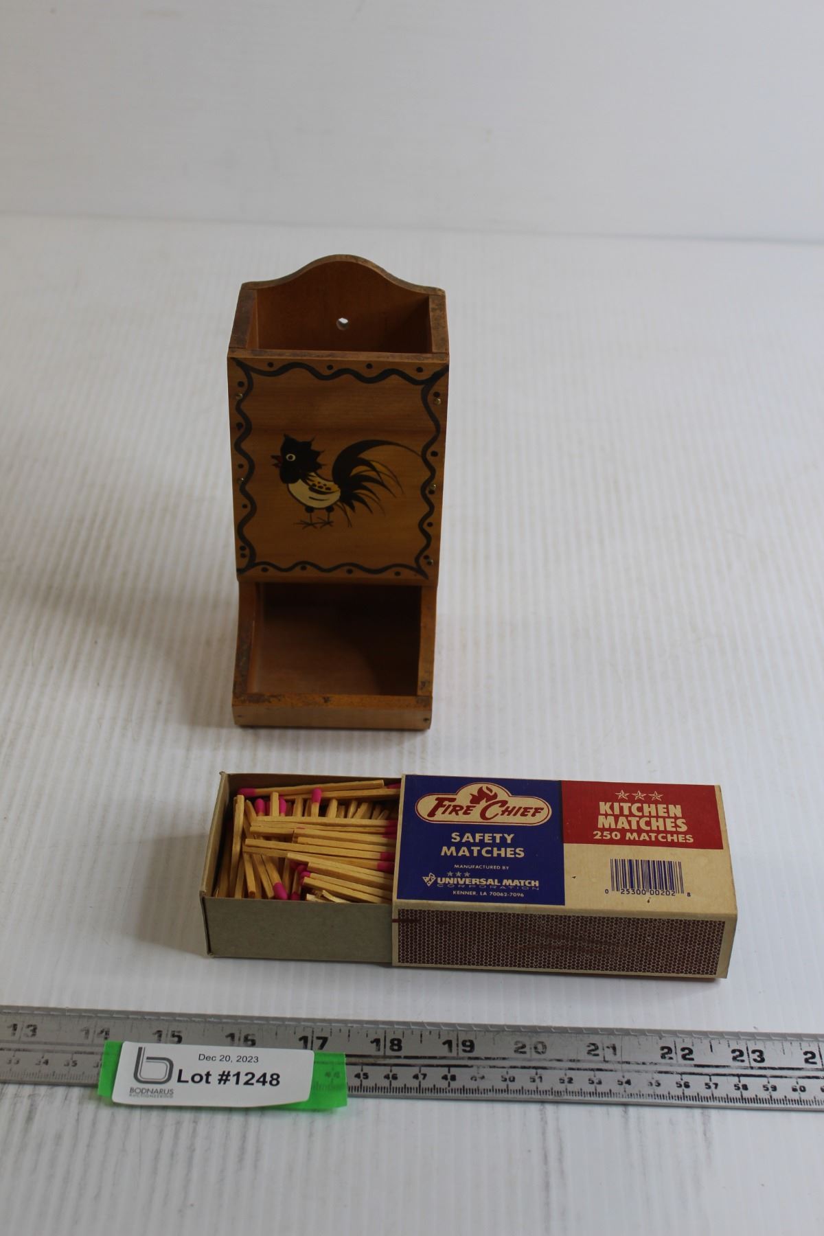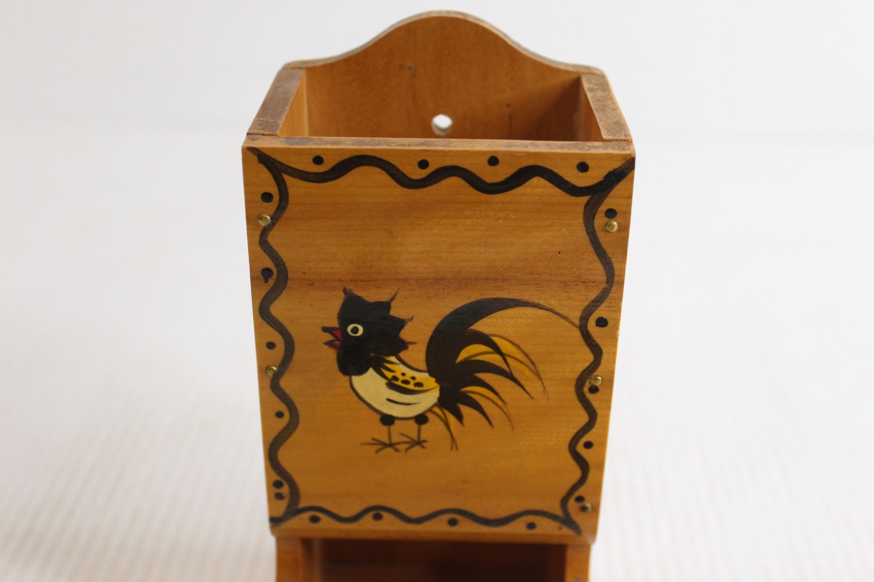 1960s Rooster Wooden Match Box Holder with Matches