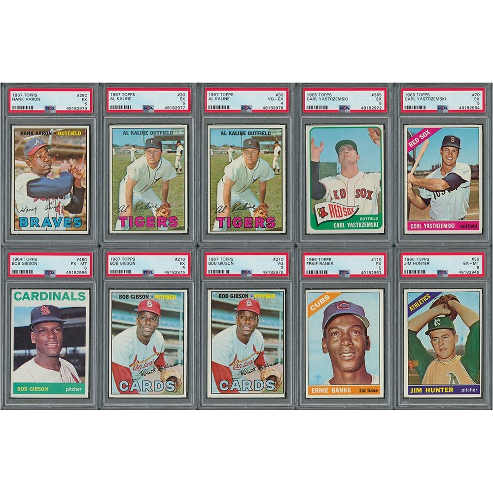 Ten 1960s Topps baseball cards of Hall of Famers, all graded by PSA. Includes:
