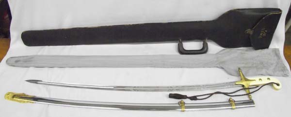 1960s USMC Presentation Sword & Leather Scabbard. Made by Hilborn & Hamburgher Inc. Leather scabbard, sword is etched. Scabbard measures approx. 41''L x 5 1/2''W. Buyers Pay Actual Shipping and Handling Charges(see terms and conditions for more information).
