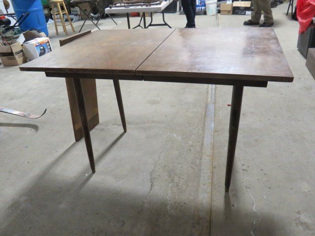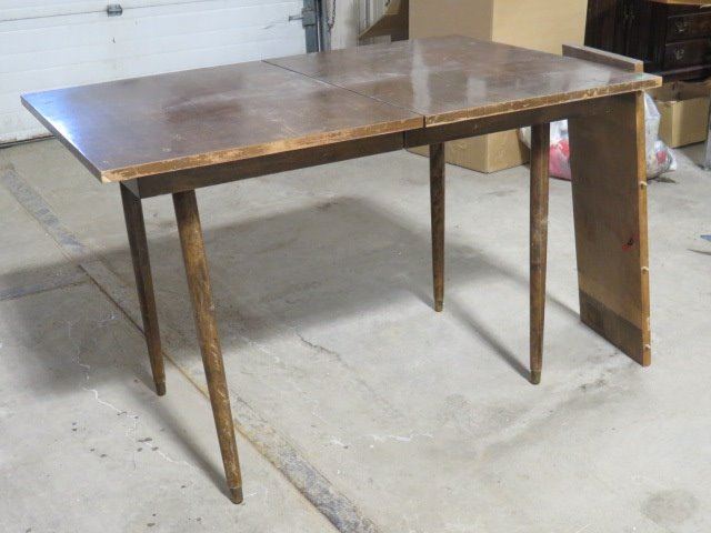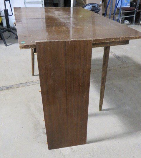 1960s WALNUT KITCHEN TABLE W/LEAF, (32X48")