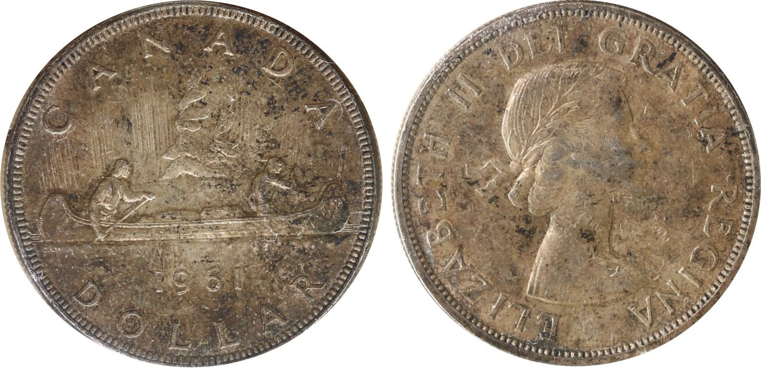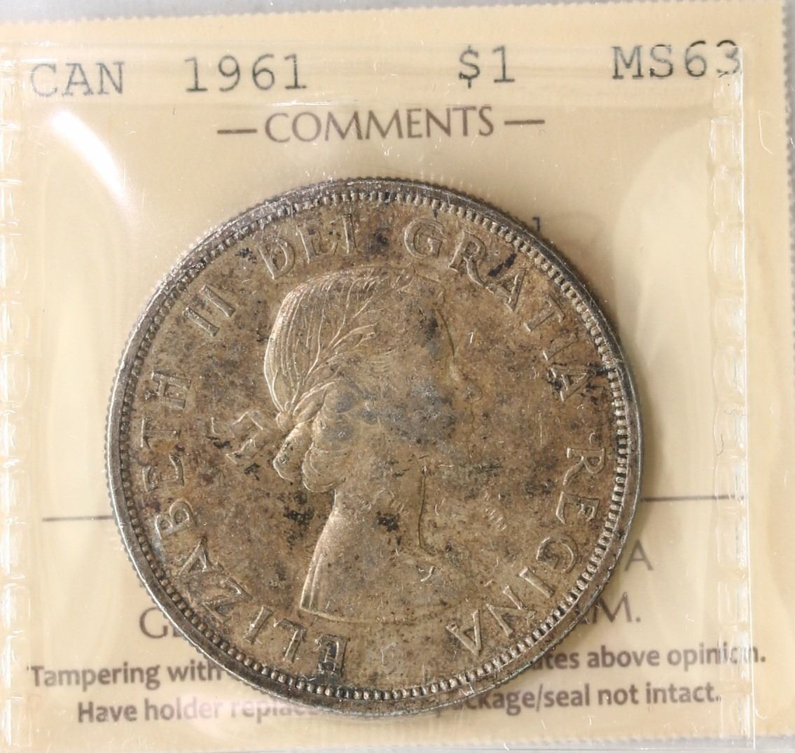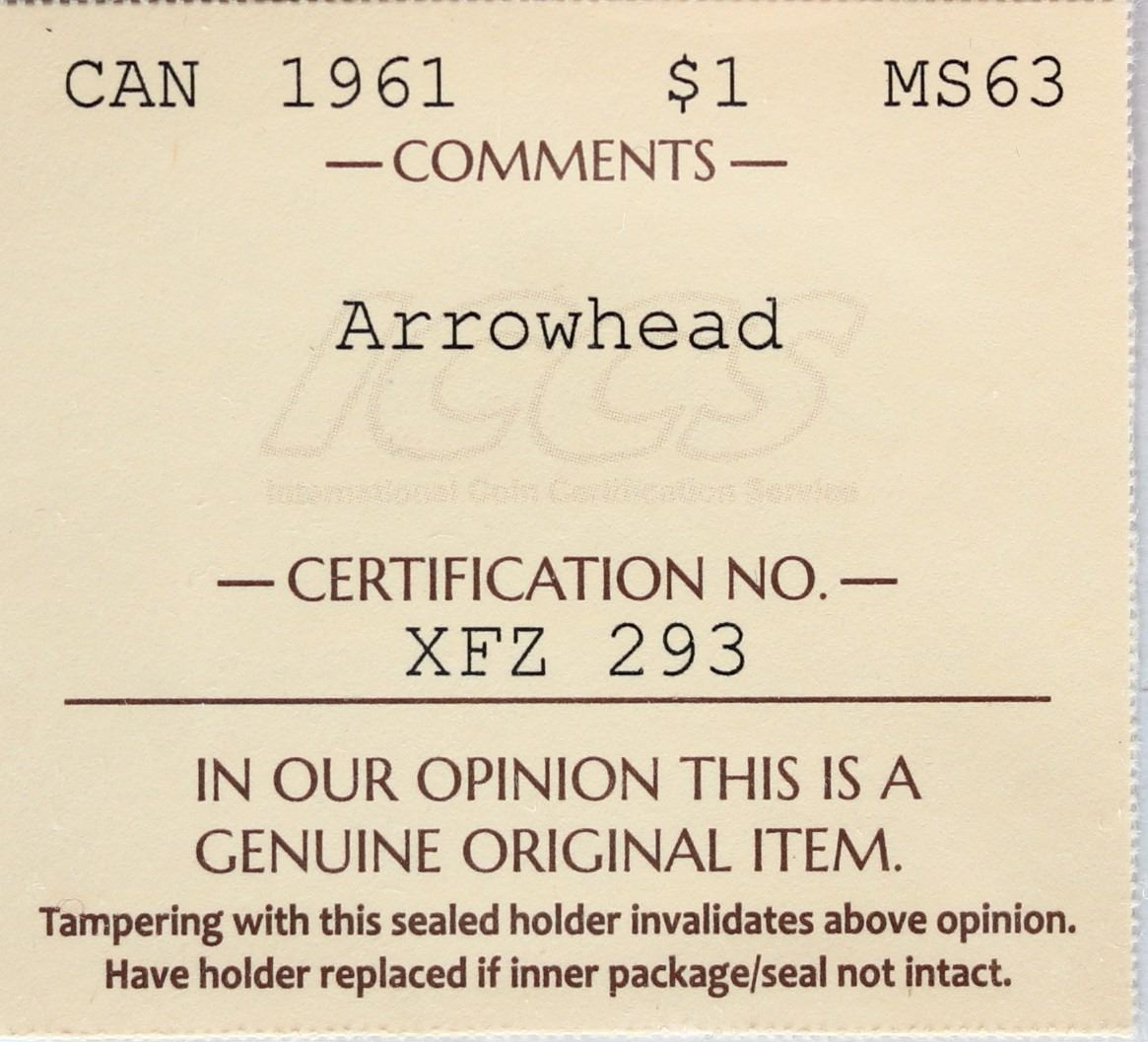 1961 $1 "Arrow Head" ICCS Choice Mint State-63. Sought after variety.
