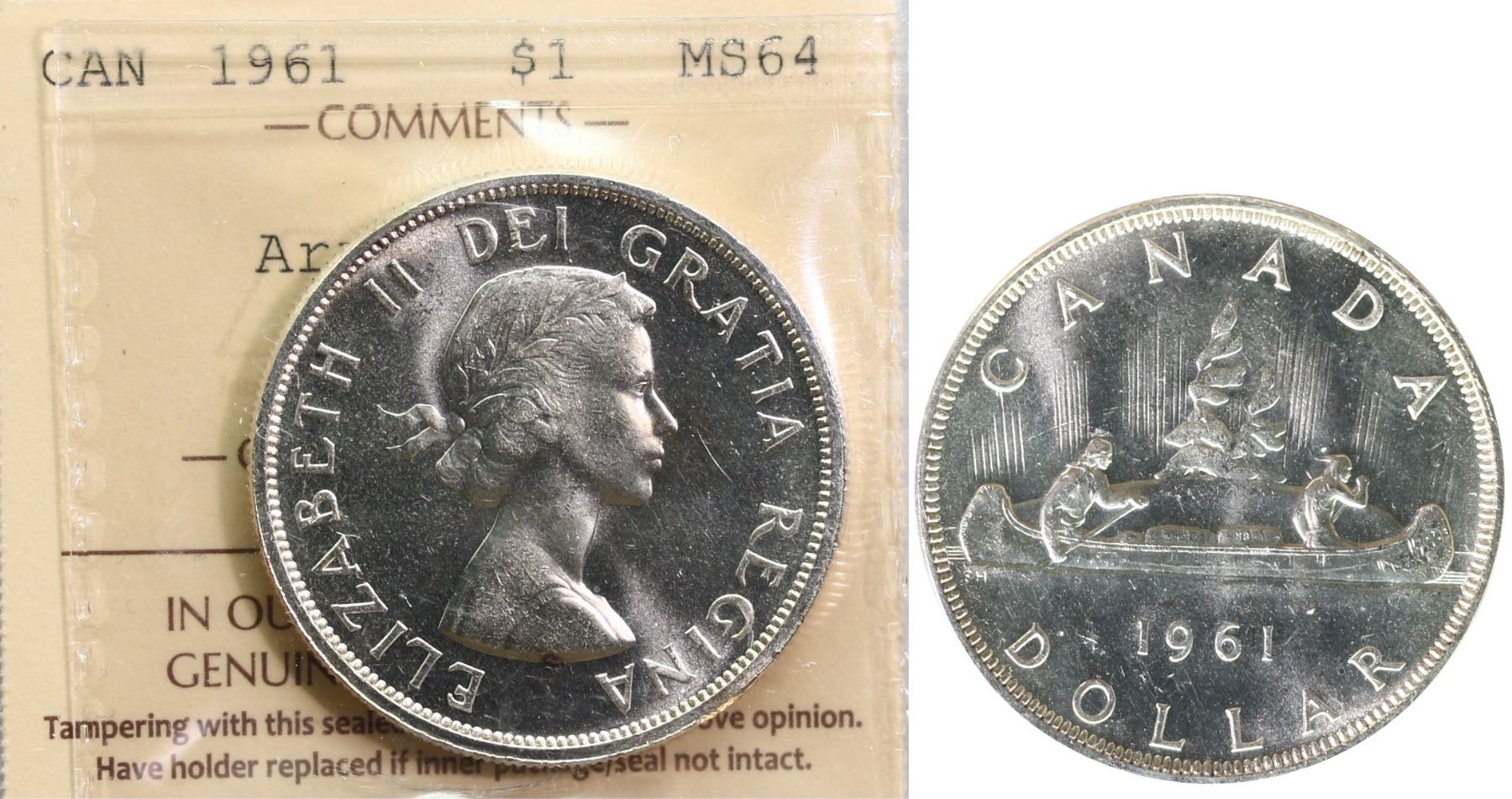 1961 $1 "Arrowhead" ICCS Choice Mint State-64 Fully brilliant and lustrous.