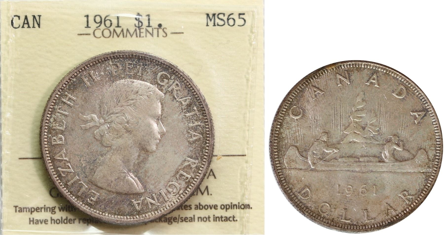 1961 $1 ICCS Gem Mint State-65, attractive gold and russet tones over full underlying lustre.