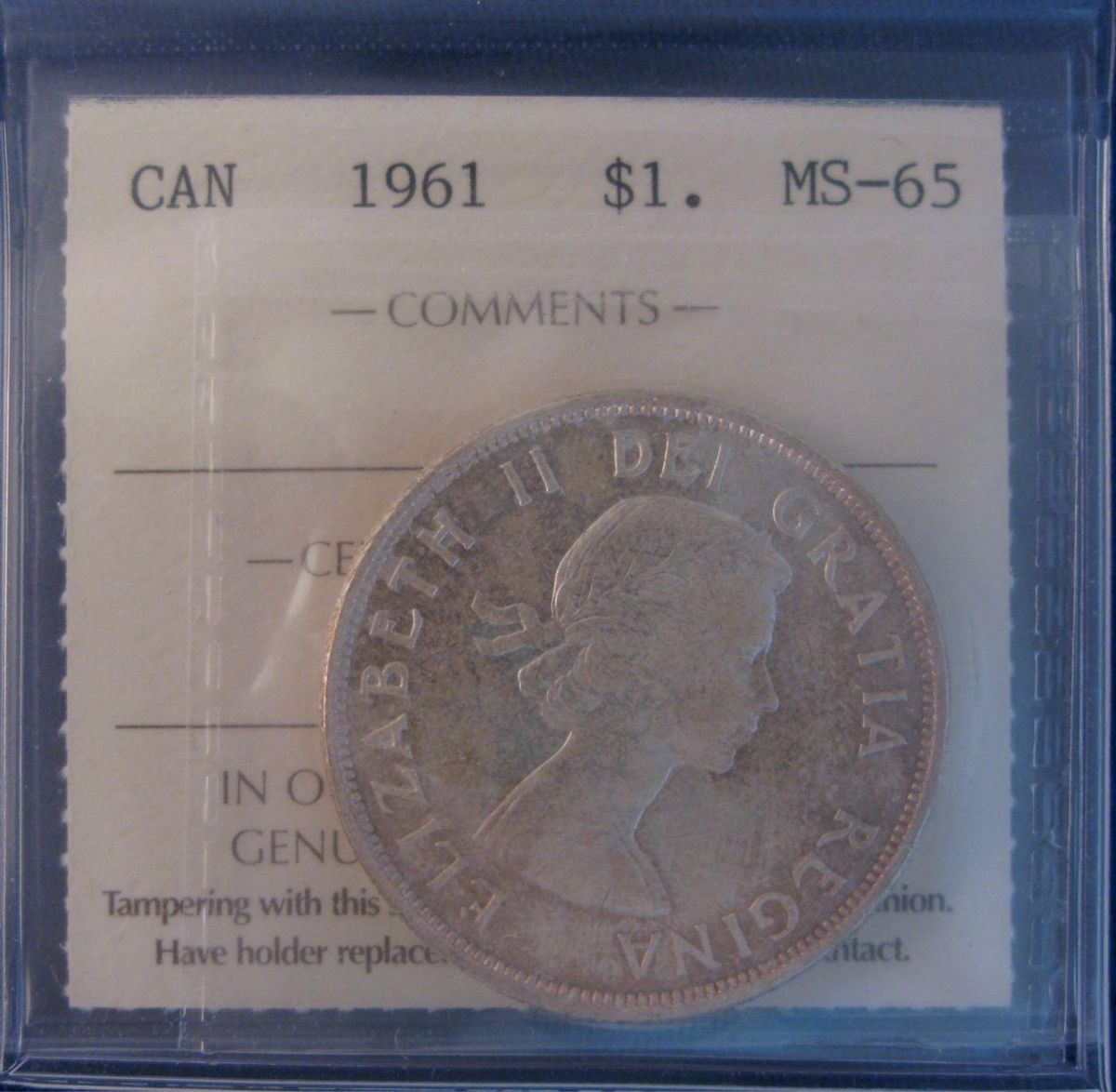 1961 $1 ICCS MS65. Great eye appeal with light tone. ICCS Top 4 with one example in MS66.