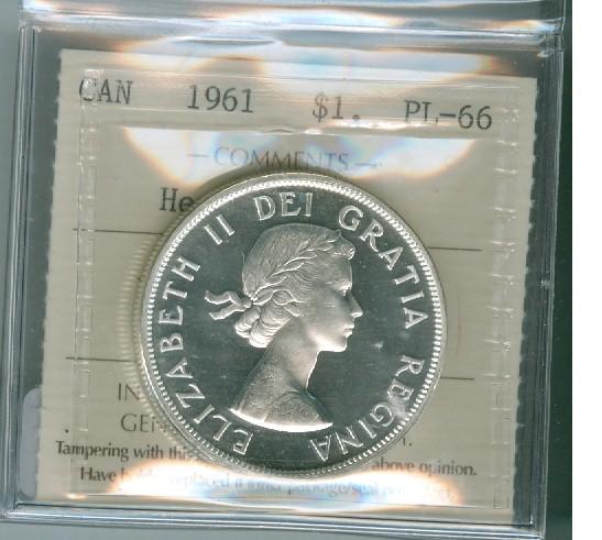 1961 $1 ICCS PL66 Heavy Cameo. A gem balst white issue.