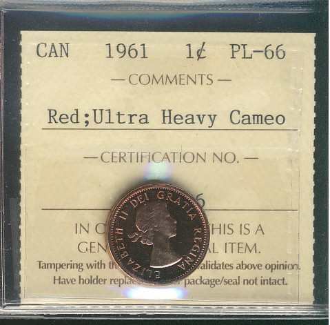 1961 1¢ ICCS PL66 Ultra Heavy Cameo.